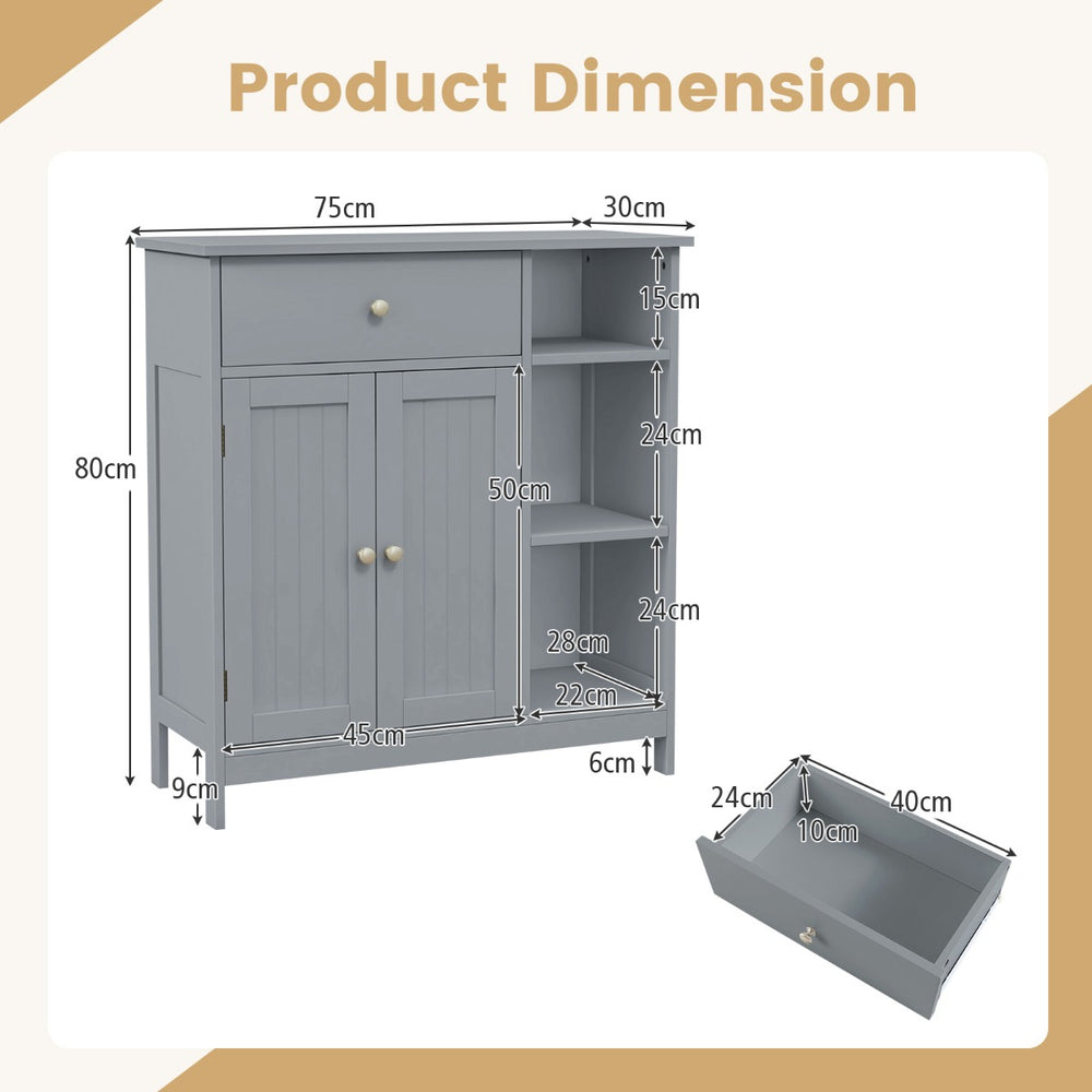 Freestanding Kitchen Bathroom Floor Cabinet Cupboard Storage Organizer-Grey