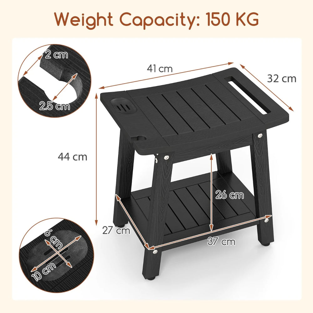 HIPS Shower Bench Seat with Handle Shower Head-Black