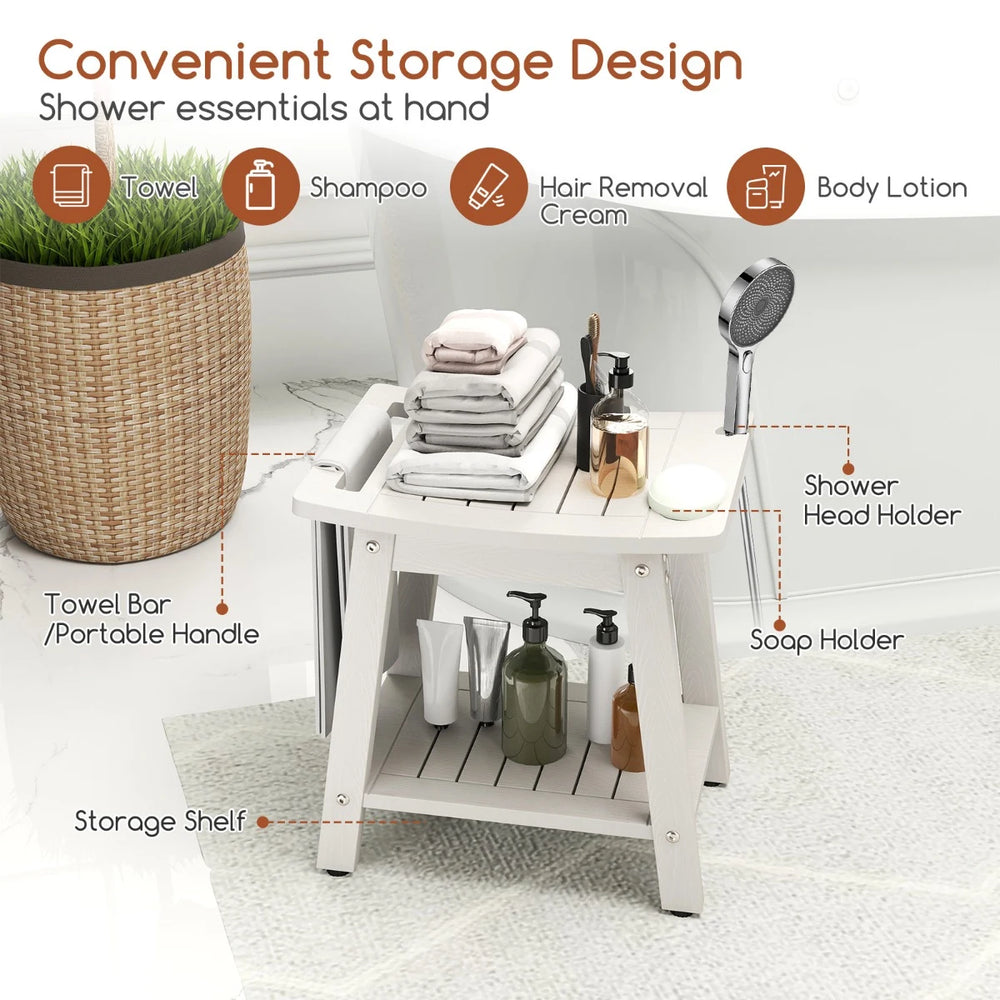 HIPS Shower Bench Seat with Handle Shower Head-White