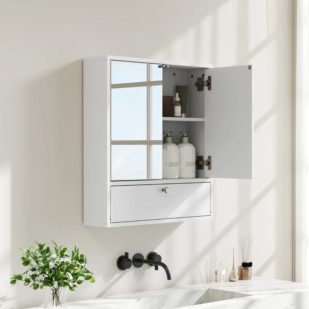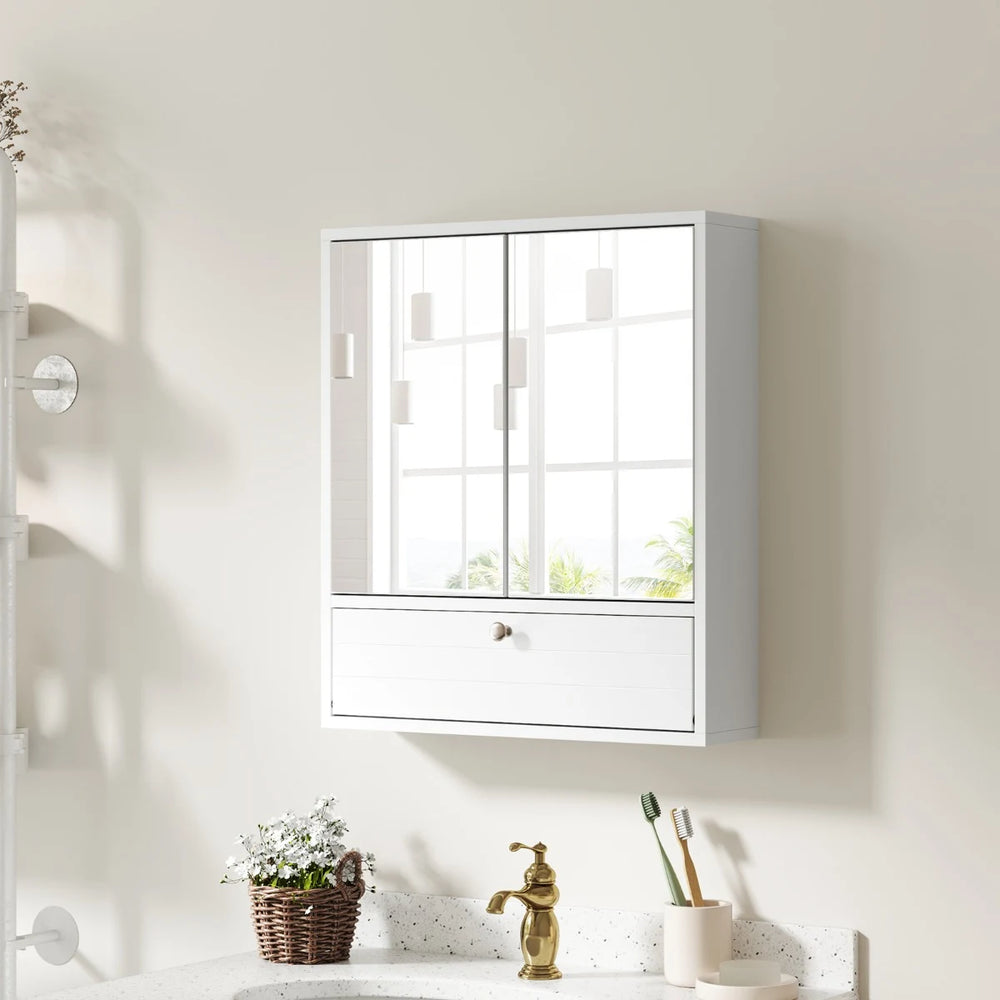 Wall-Mounted Bathroom Cabinet with Mirror and 3-Level Adjustable Shelf and Flip-Open Compartment-White