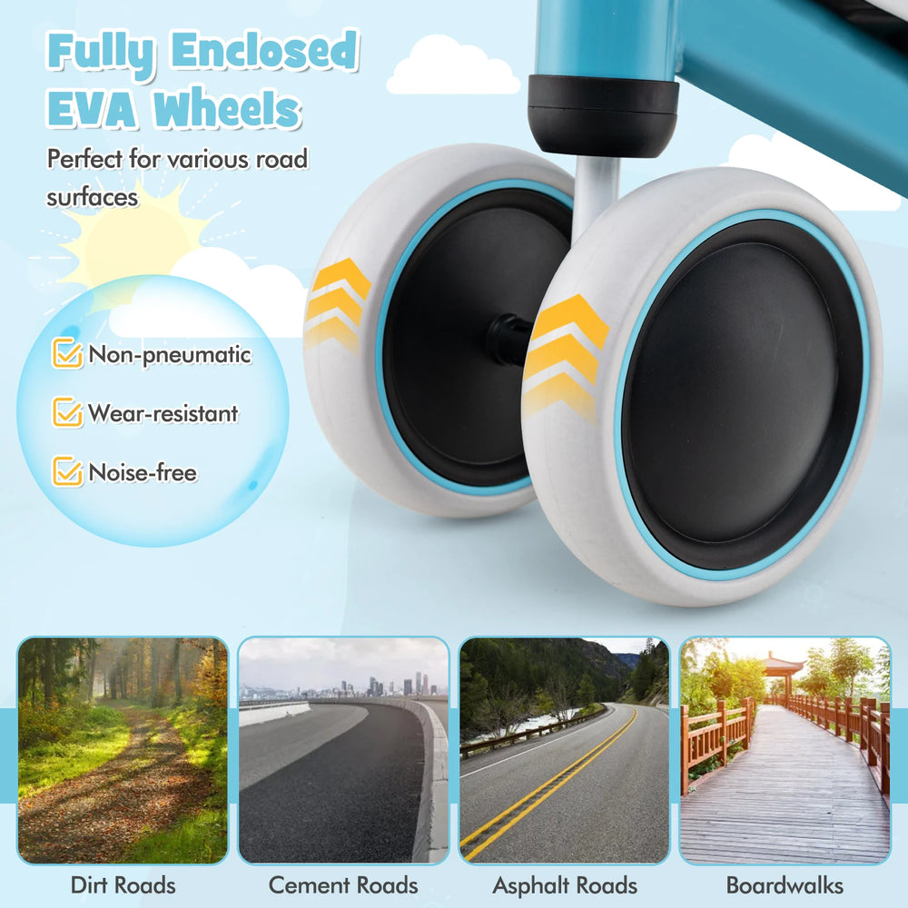 No Pedal Baby 4 Wheels Balance Bike with Non-slip Handlerbar-Blue