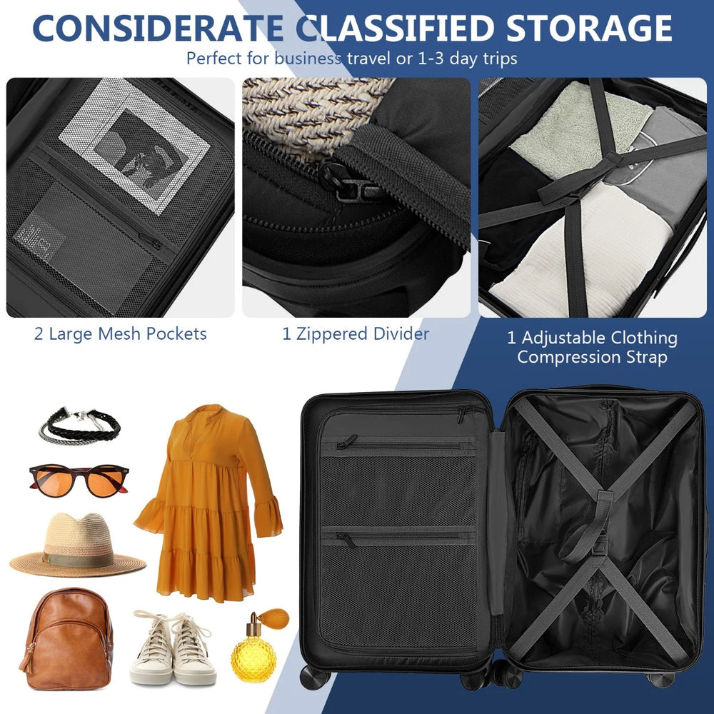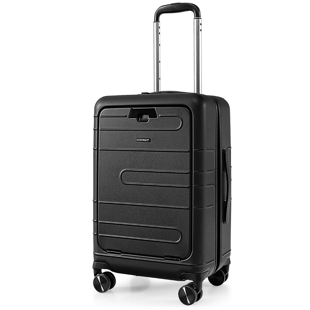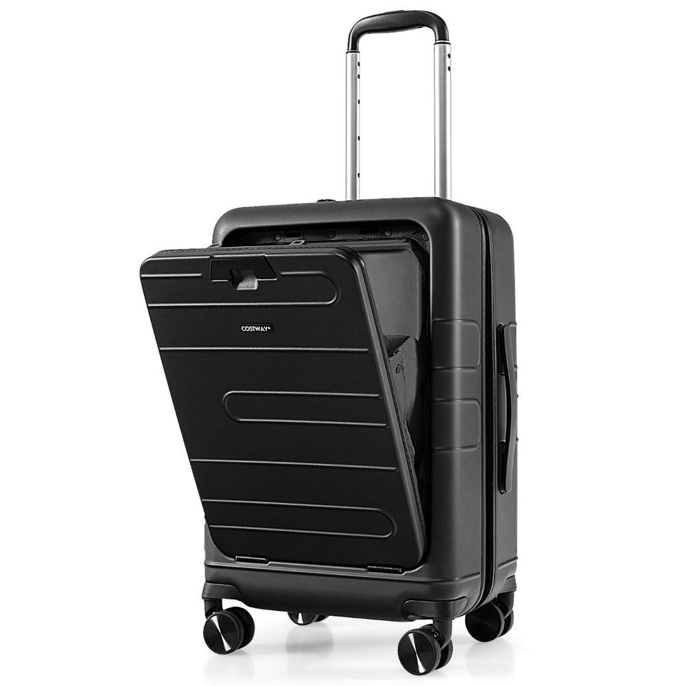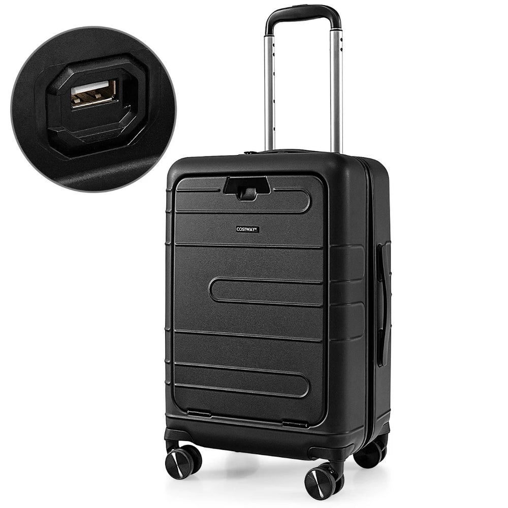 20 Inch Carry-on Luggage PC Hardside Suitcase TSA Lock with Front Pocket and USB Port-Black