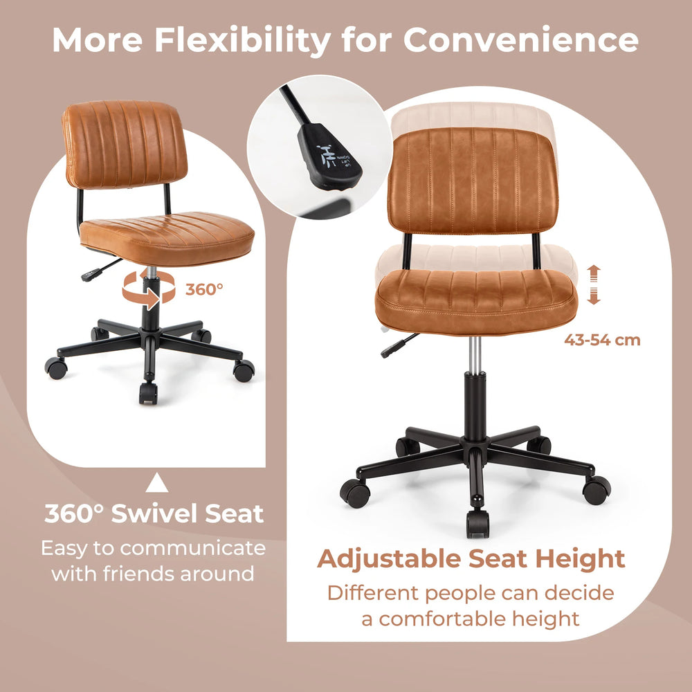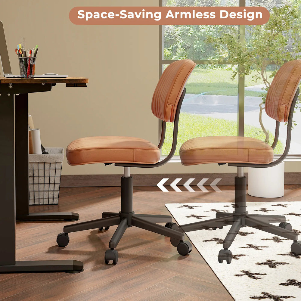 PU Leather Adjustable Office Chair Swivel Task Chair with Backrest-Orange