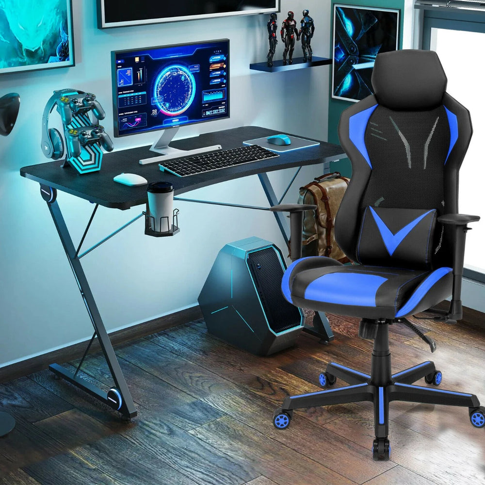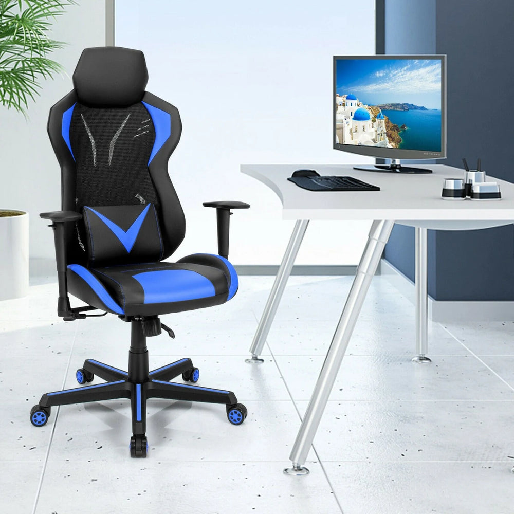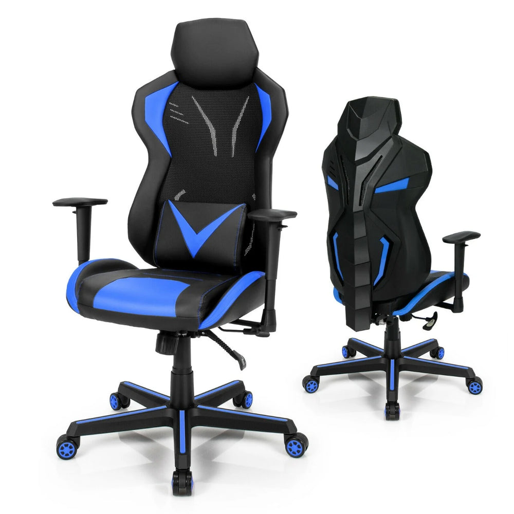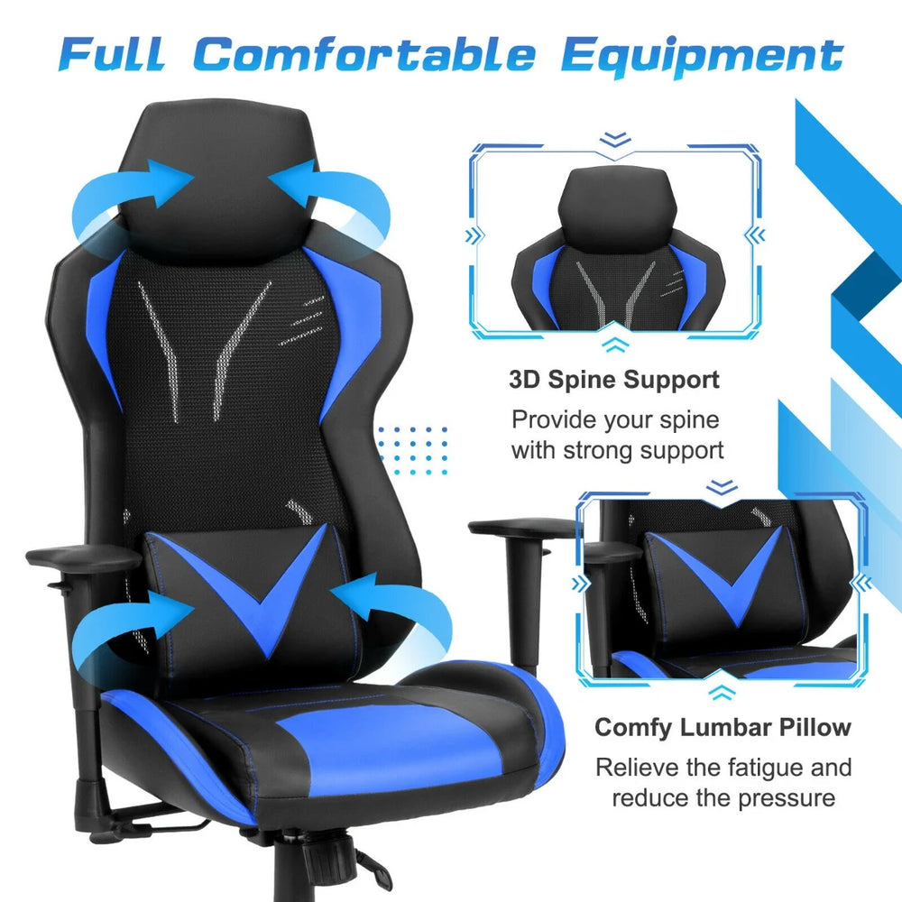 This ergonomic gaming chair combines a waterproof PU leather seat with a breathable mesh back to give long-lasting comfort during marathon gaming sessions or focused work. Thick sponge padding in the seat cushions and a 3D spine-support design help distribute pressure and support posture for extended sitting.