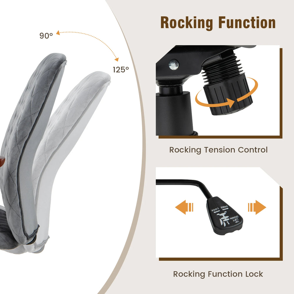 Adjustable Velvet Rocking Leisure Chair with Padded Seat-Grey