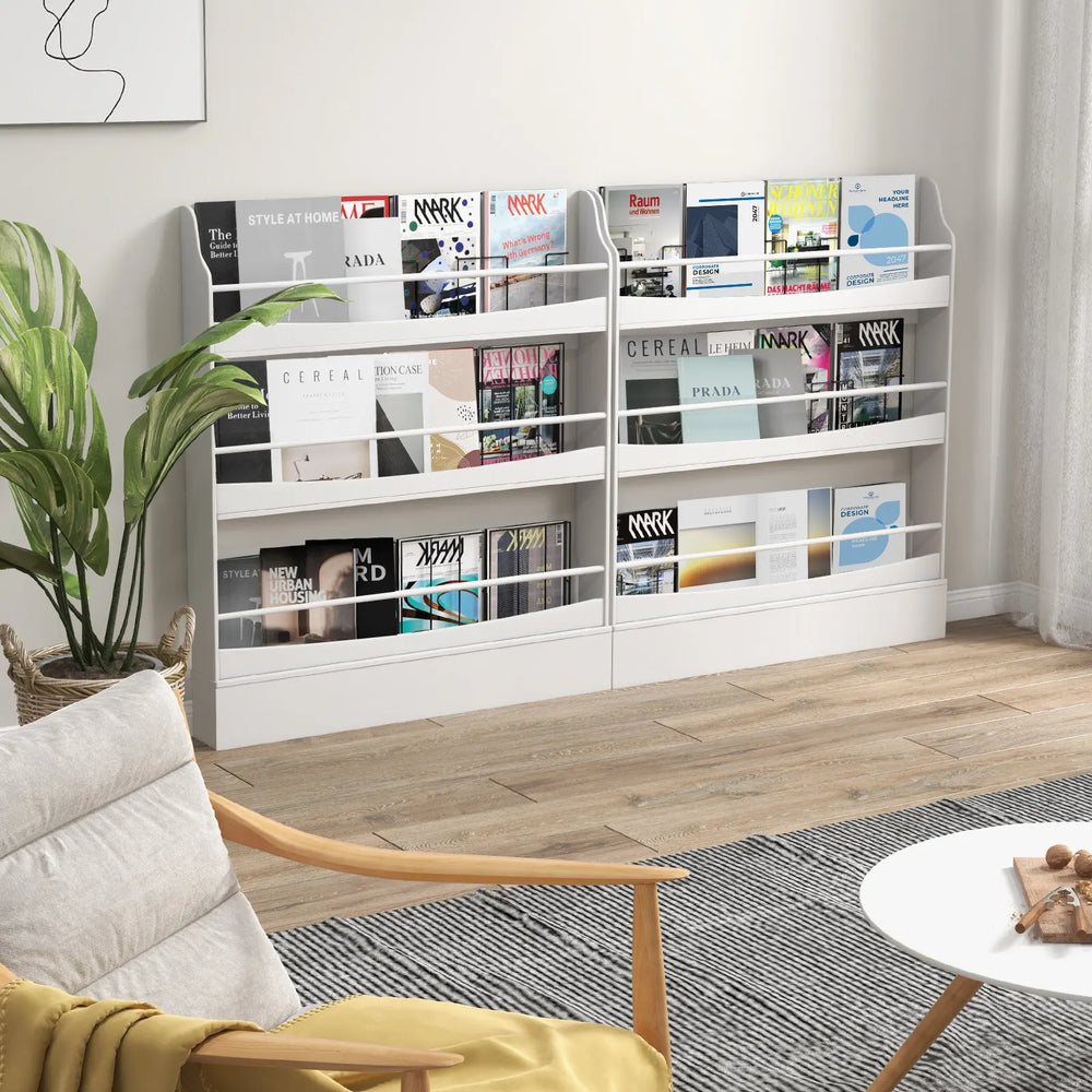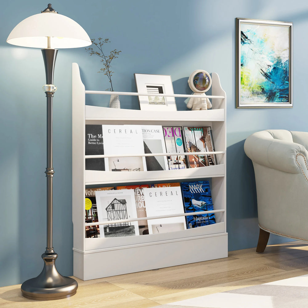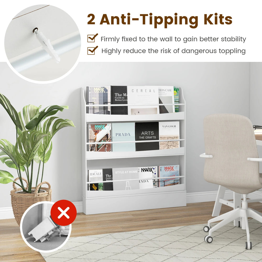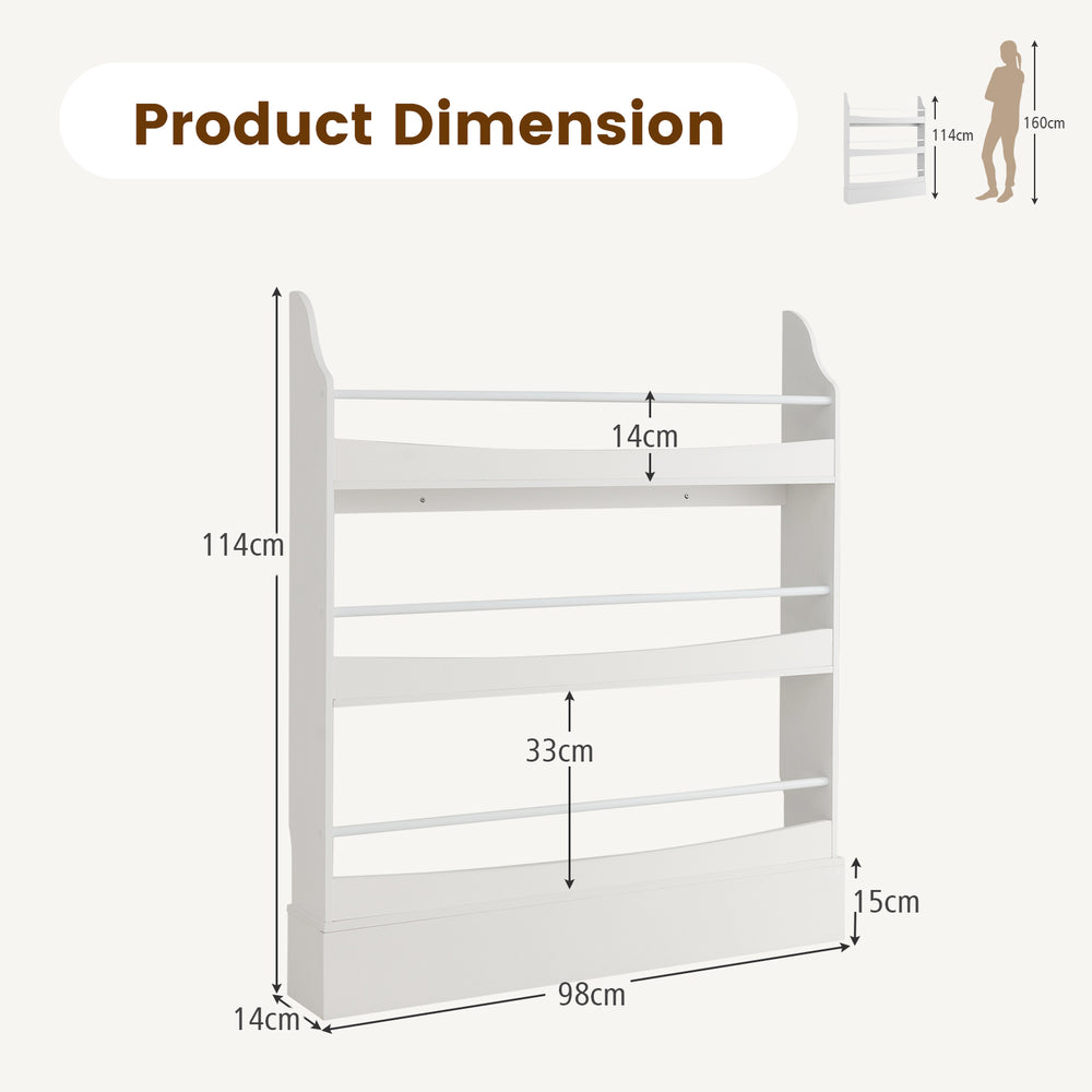 Need a reading corner for your growing child? This space-saving bookshelf is a good choice. It offers 3 tiers of open shelves to keep kid's toys, books and other sundries in order. Each tier is fitted with anti-falling guardrail to keep the books in place. And the whole display shelf can be mounted to the wall with the anti-toppling device. Thus, you don't have to worry about it being knocked down to hurt your family members. And the well-designed storage shelf gives a chance for kids to learn how to organize their own stuff, teaching them the importance of keeping tidy and clean. What's more, the wall bookcase uses the free wall space not only to enhance wall decoration but also to increase children's interest in reading. Bullet Point: Keep Books Organized within Little Ones Reach: The 3-tier kids bookshelf offers ample space for storing & display kids' books in a well organized manner. Meanwhile, the 114cm height is friendly to kids, making it easy to reach for the books. Thus, the bookcase can boost kids' interest in reading and cultivate good habit of storage. Free-standing Bookshelf with Anti-toppling Device: The floor bookshelf is designed with a heavy and stable base to keep good balance. With the included expansion bolts and screws, it can be anchored to the wall for enhancing stability. Therefore, the storage rack will stay in place and be free from falling accidents. Space-saving Narrow Storage Organizer for Any Rooms: With a width of 14cm, the narrow freestanding bookshelf can fit anywhere and make good use of the space. It's a spiffy sidekick to build up an ideal reading nook in living room, kid's bedroom or classroom, which is great for kids to enjoy reading together. Safe & Sweet Details for Convenient Use: There are more details that show the care for kids. For example, the sleek round edge can prevent kids from being scratched, while the screw hole stickers cover the unsightly holes for a safe and clean look. What's more, there is reserved space for baseboard at the back, which allows the bookcase to fit the walls as close as possible. Easy to Set up & Maintain: The children's toy organizer is simply constructed. With each step clearly illustrated in the user manual, the installation of the display shelf is as easy as pie. Meanwhile, with the smooth and waterproof surface, you can keep the bookshelf clean with the minimal effort. Features: Multi-tier vertical shelves save floor space Offer large storage capacity for books, toys, snacks, magazines and newspapers With front guardrails and baffles to keep books tidy & in place without falling The friendly height allows children to easily access books and toys Anti-toppling device to keep shelf well fixed Bookshelf has space reserved for skirting board to be as close to the wall as possible Screw holes are covered with round stickers for a safe and clean look With safe and round corners to keep from bumps Child-friendly materials and sturdy wooden structure are more durable Narrow shape fits any rooms, such as kids room, living room, study or classroom Easy-to-clean surface and quick assembly save you time and effort Specifications: Color: White Material: P2 Engineered Wood Overall Dimension: 98 x 14 x 114cm (L x W x H) Height of Each Tier: 33cm Guardrail Height: 14cm Baseboard Height: 15cm Max Load Capacity: 45kg Net Weight: 10kg Package Includes: 1 x 3-Tier Bookshelf 1 x User Guide