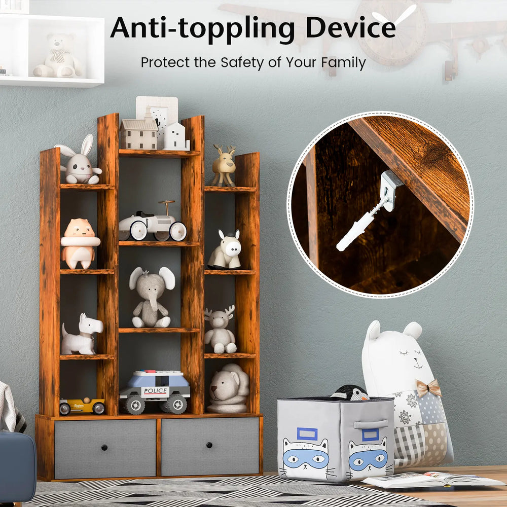 Constructed from engineered wood with a smooth, water-resistant painted surface, the unit is easy to wipe clean and maintain. Strong connections and robust shelving offer dependable support for books and display items, while two large built-in drawers hide personal items and reduce visual clutter.