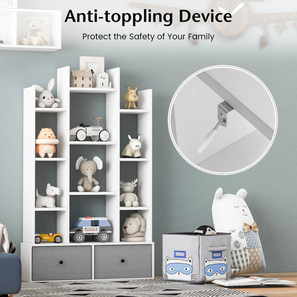 Anti-toppling devices are included to reduce the risk of tipping when the unit is in use. The bookshelf comes with detailed instructions for quick installation, and the painted finish helps protect surfaces from small spills and marks.