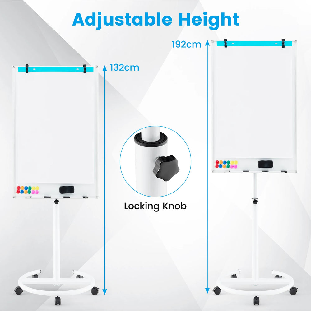 100 cm x 65 cm Height-Adjustable Magnetic Whiteboard on Wheels-White