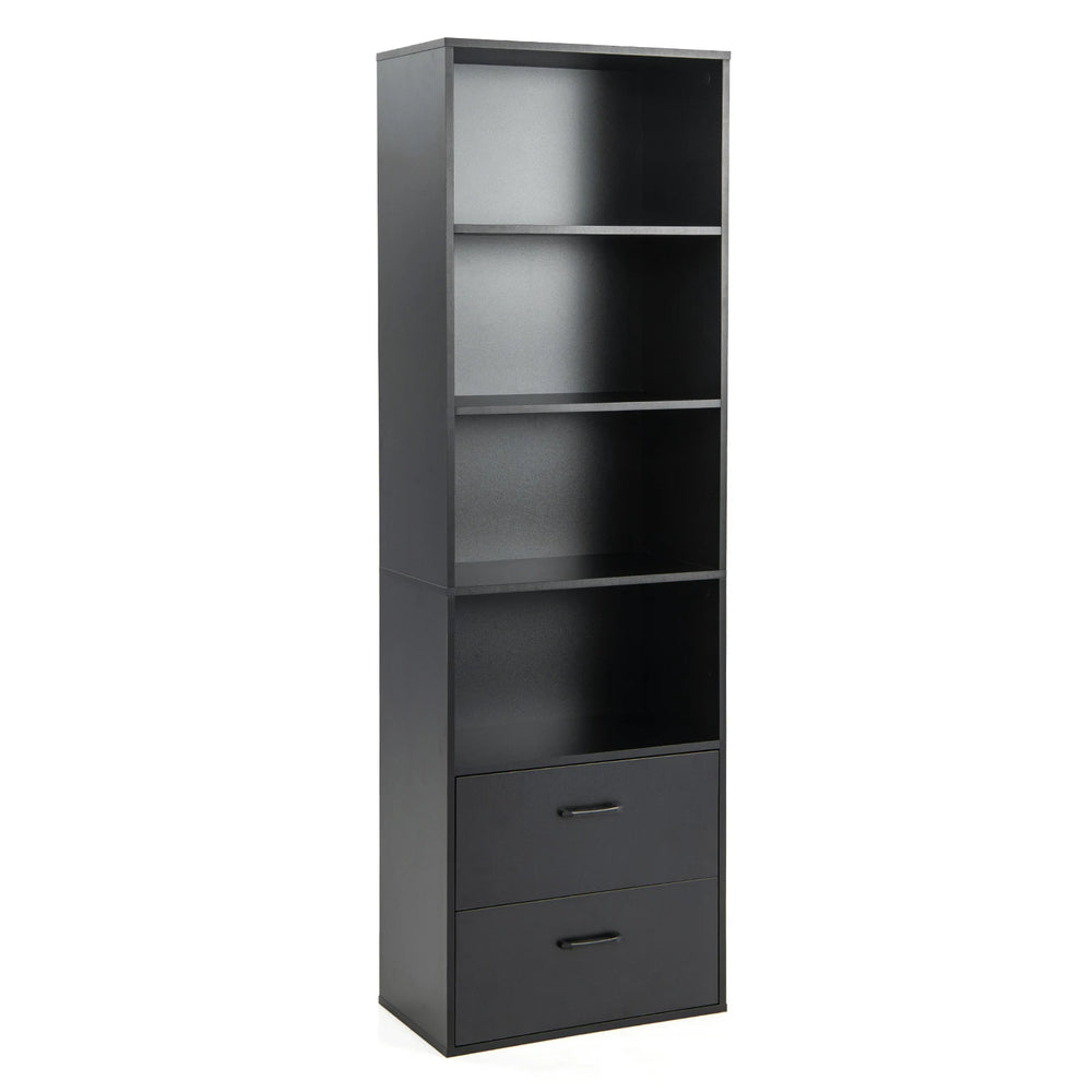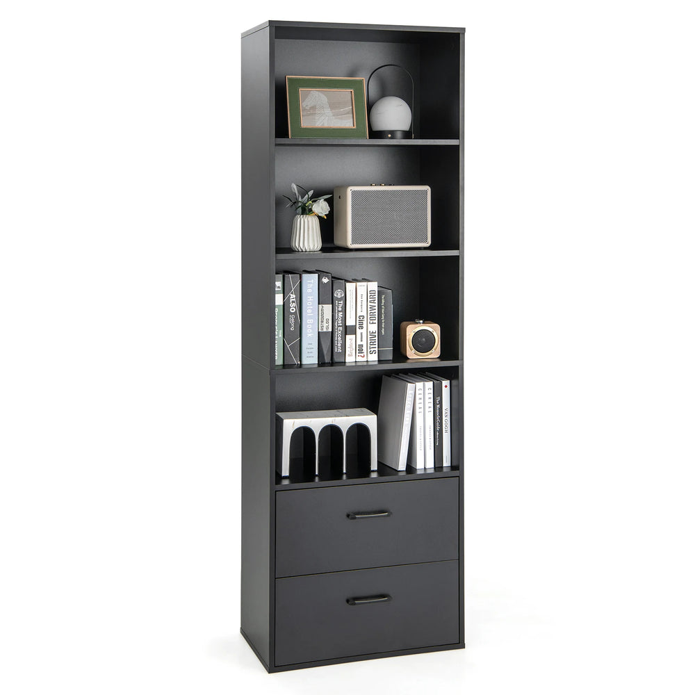 6-Tier Tall Freestanding Bookshelf with 4 Open Shelves and 2 Drawers-Black
