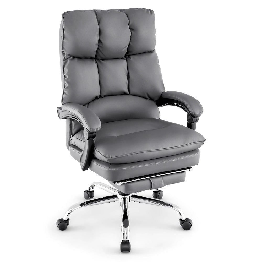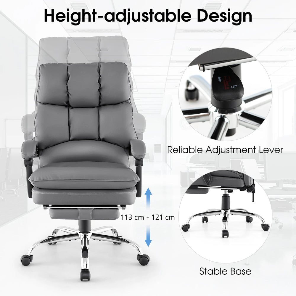 Ergonomic Adjustable High Back Rolling Computer Chair with Retractable Footrest-Grey