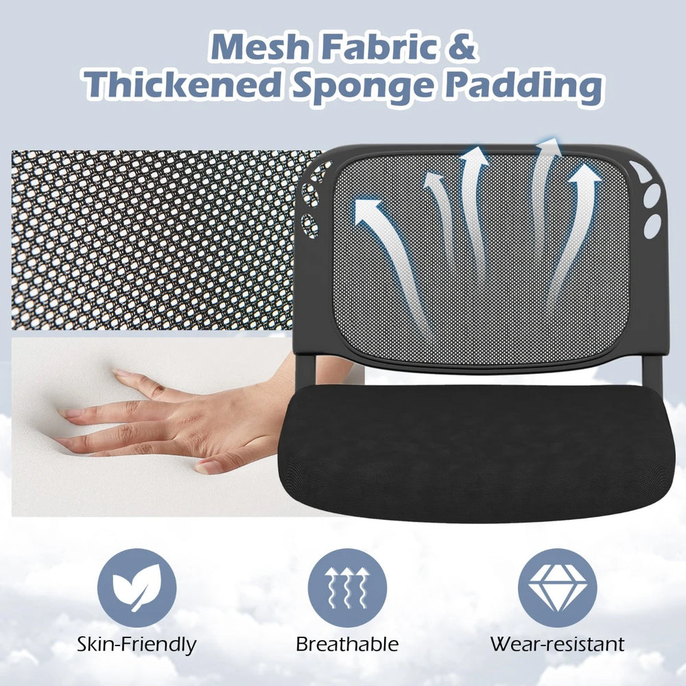 - Breathable upholstery: Mesh fabric keeps air moving to help regulate temperature and reduce perspiration in busy rooms.