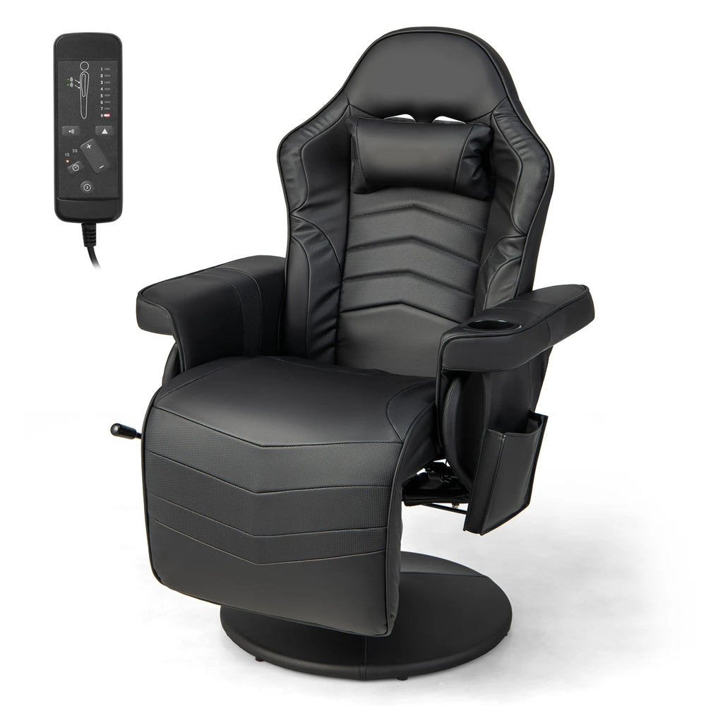 Electric Massage Gaming Chair with Cup Holder and Side Pouch-Black