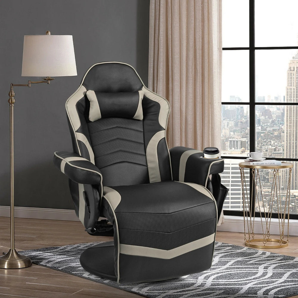 Electric Massage Gaming Chair with Cup Holder and Side Pouch-Grey