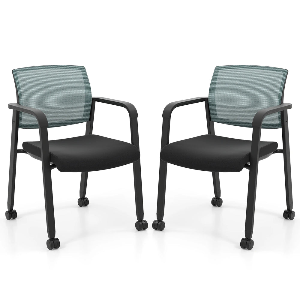 Waiting Room Chairs Set of 2 with Armrests and Wheels-Grey