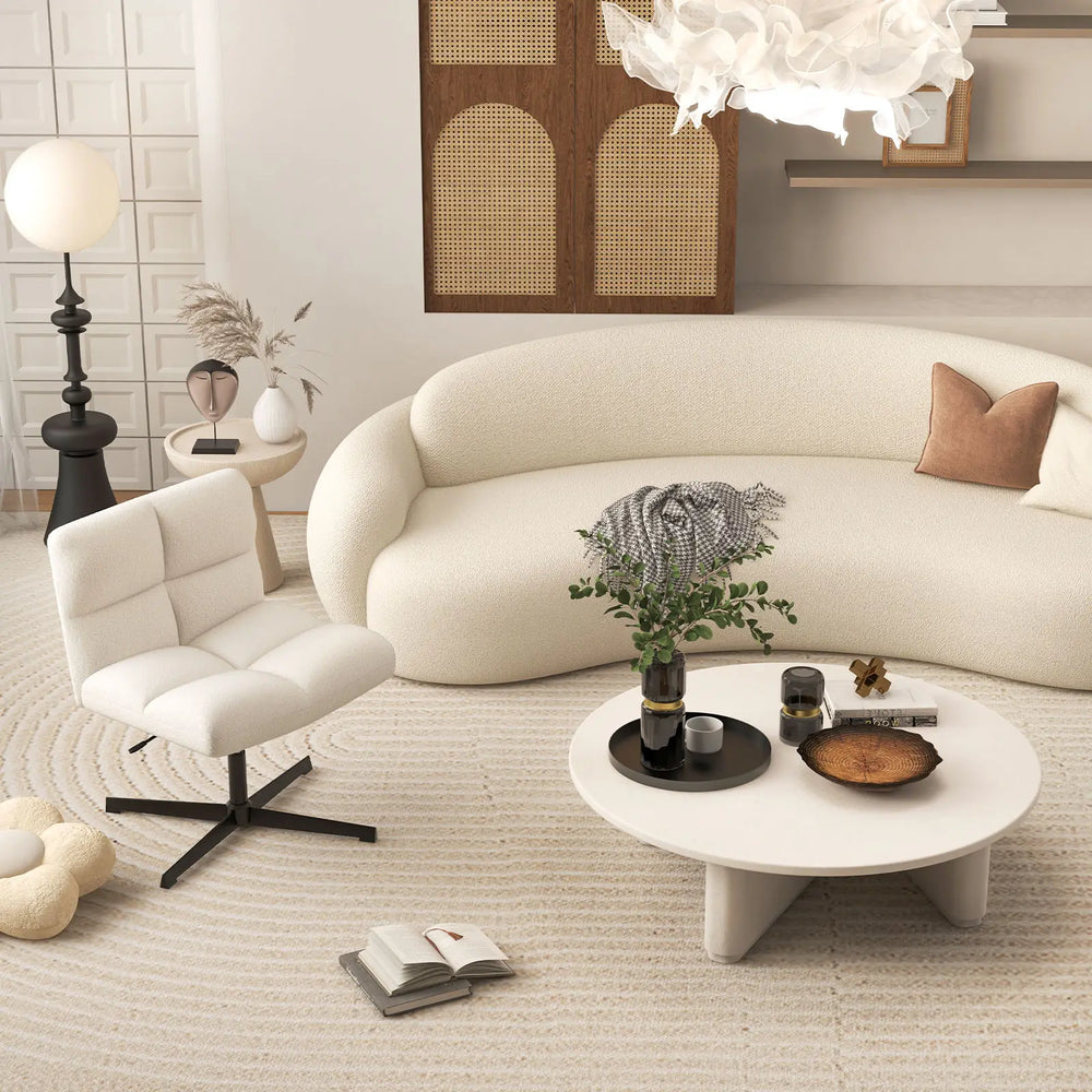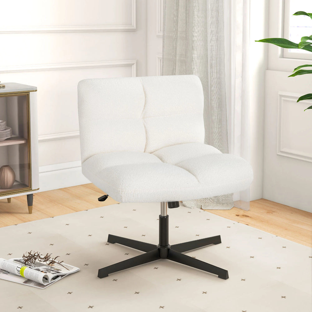 Office Armless Chair Cross Legged with Imitation Lamb Fleece and Adjustable Height-Beige