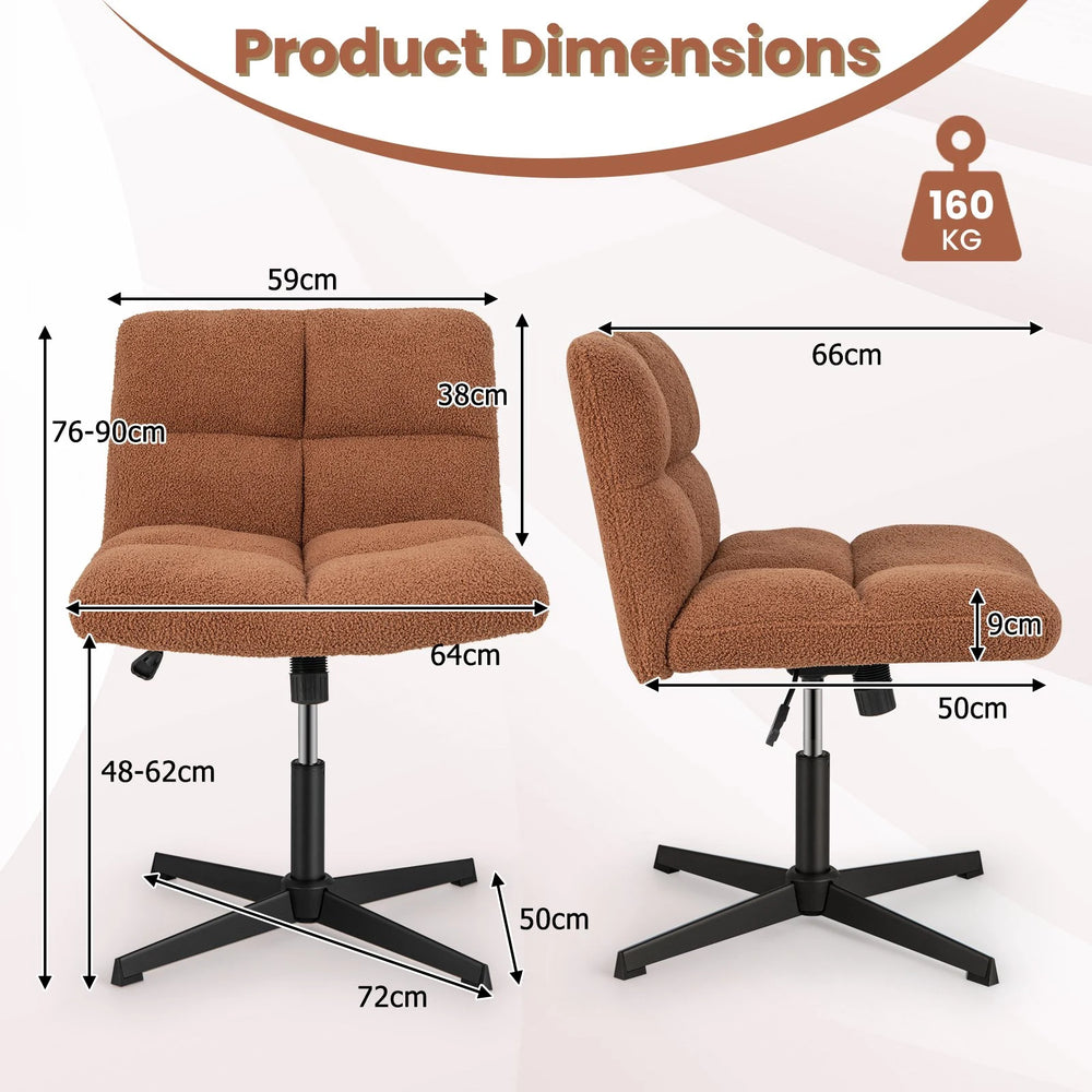 Office Armless Chair Cross Legged with Imitation Lamb Fleece and Adjustable Height-Brown