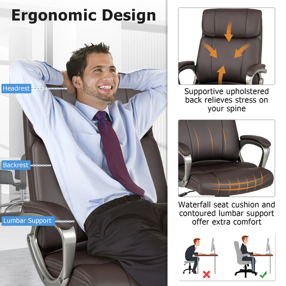 Swivel Ergonomic Office Chair Computer Desk Chair with Wheels-Brown