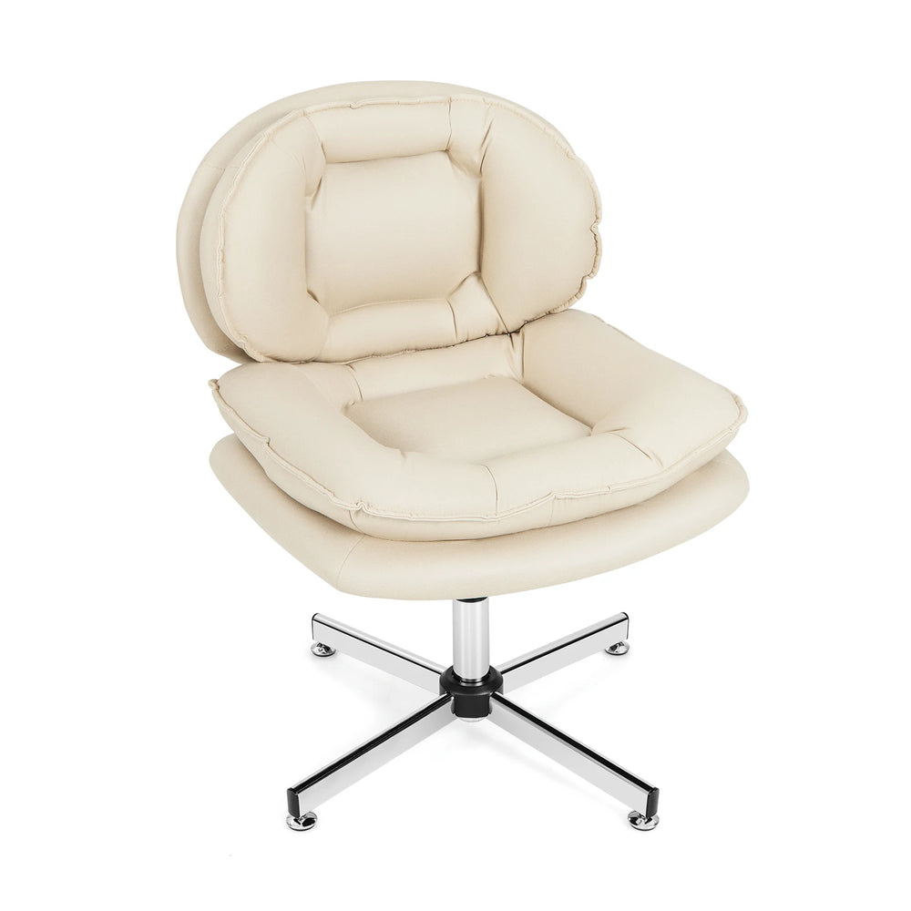 Upholstered Home Office Desk Chair with Double Padded Back and Seat-Beige
