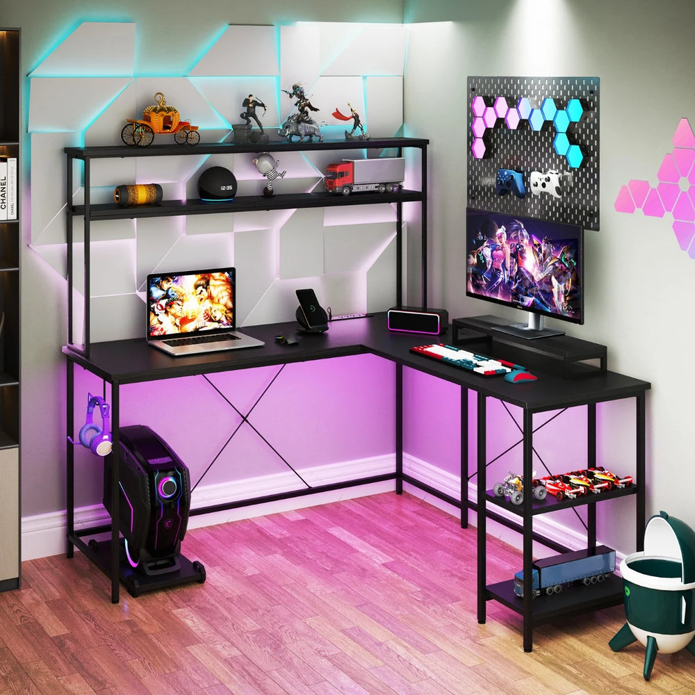 L-Shaped Gaming Desk with LED Strip and Power Outlets-Black is backordered and will ship as soon as it is back in stock.