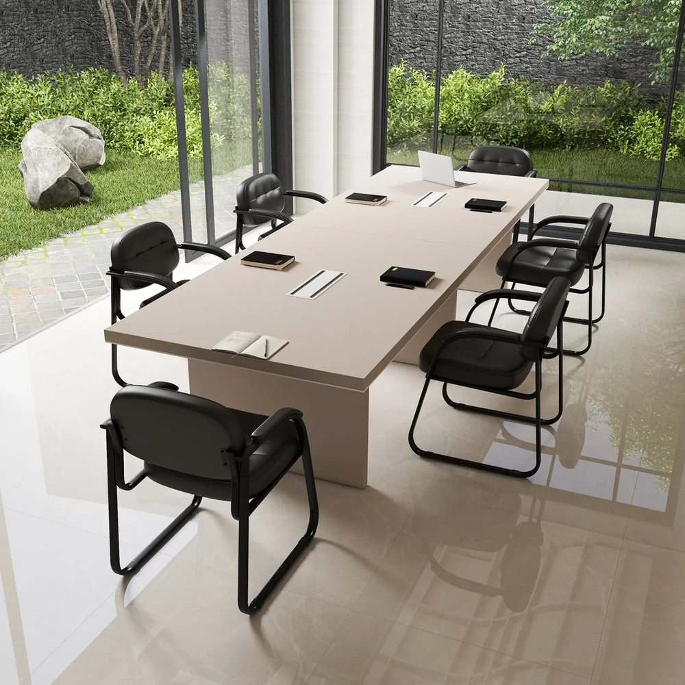 The conference chairs create welcoming and comfortable seating arrangement! Designed with comfort and relaxation in mind, the meeting room chairs feature ergonomic hollow-out backrest to promote proper alignment and reduce strain on the back muscles. The padded armrests are selected to enhance comfort coziness. More, selected leather upholstery and soft sponge padded filling provide cozy sitting experience for extended periods. With its solid metal construction, each chair is built to last and can support up to 150 kg, providing a safe and secure seat for guests, clients, or employees. All in all, the office guest chairs are perfect seating solution for a variety of spaces, including reception room, conference room, lobby, and office. Bullet Point: Ergonomic Backrest & Padded Armrests: The reception chairs feature ergonomic backrest for comfy support, reducing back strain and promoting good posture. The padded armrests add extra comfort, allowing you to relax and feel at ease while waiting or attending meetings. High-quality Upholstery: The conference room chairs are upholstered in soft & skin-friendly PU & PVC leather for optimal comfort and easy maintenance. More, thickened cushion is filled with high-density sponge for excellent sitting experience. Sturdy Metal Structure: The waiting room chairs are built with heavy-duty baking painted metal frame, ensuring a sturdy structure and weight capacity of 150 kg. Meanwhile, anti-slip foot pads benefit floor protection and superior stability. Versatile Seating Solution: The guest chairs are classic and stylish in appearance, which can match a variety of styles of space. Whether used for home, reception area, conference room, lobby, or office, these chairs provide practical seating solution. Assembly & Care with Ease: No need to worry about complicated tools or instructions. Set up your office guest chairs in no time with hassle-free assembly process. Smooth surface is easy to clean by wiping with a damp cloth. Features: High resilient sponge padded seat achieves upgraded relaxation Premium PU & PVC leather combines good softness & tactility Ergonomic backrest for optimal support & better posture Comes with well-padded armrests for more comfort Heavy-duty metal tubes ensure sturdy & durable construction Firm bolt connection is not easy to crack or shake Non-slip foot pads prevent the floor from scratches Ideal for home, office, waiting room, or conference room, etc Contemporary design matches with any decorations Easy to assemble according to the clear instruction Specifications: Color: Black Material: PU, PVC, Sponge, Metal Overall Dimension: 62 x 63 x 77 cm(L x W x H) Backrest Size: 50 x 30 cm (L x W) Seat Size: 52 x 49 cm (L x W) Thickness of Cushion: 8 cm Length of Armrests: 62 cm Length of Base: 61 cm Height from Seat to Ground: 44.5 cm Height from Armrest to Ground:64.5 cm Net Weight: 20 kg Weight Capacity of Each Chair: 150 kg Package Includes: 2 x Reception Chairs 1 x Instruction