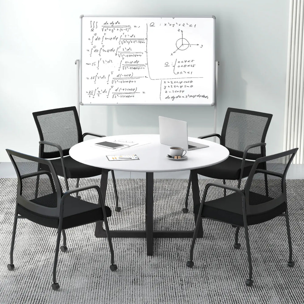 2 Pieces Office Guest Chairs on Wheels with Metal Frame and Armrests-Black