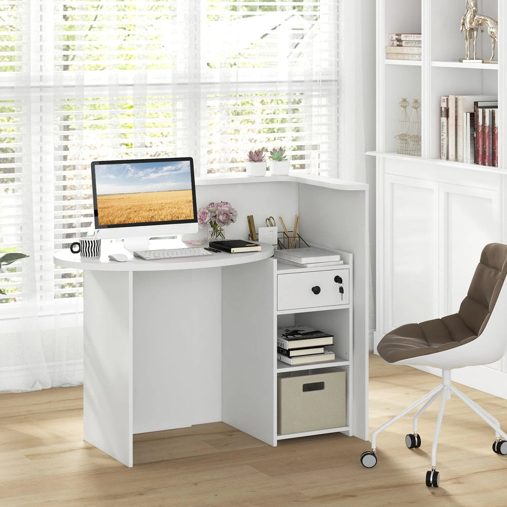 Reception Desk with Lockable Drawer and Adjustable Shelf for Office-White