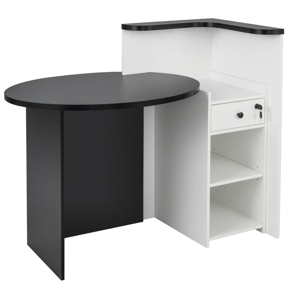 Reception Desk with Lockable Drawer and Adjustable Shelf for Office-Black