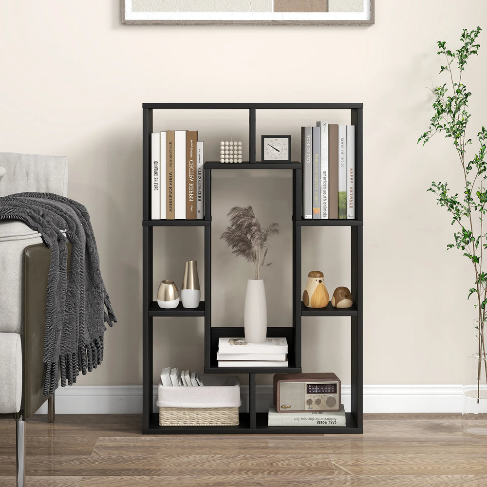 7-Cube Geometric Bookshelf Open Bookcase with Anti-Toppling Device-Black