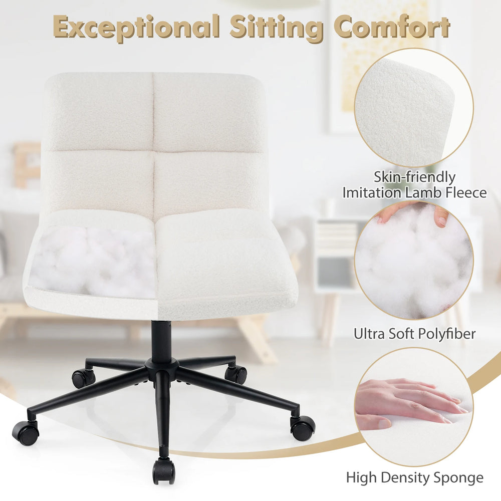 Cross Legged Chair with Wheels with Padded Seat Adjustable Height for Bedroom Study-Beige