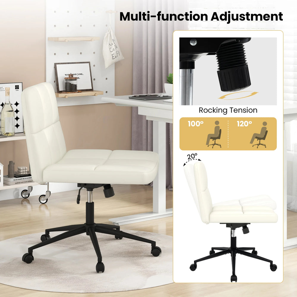 Height-adjustable Armless Desk Chair with Wheels for Home Office Make Up-Beige