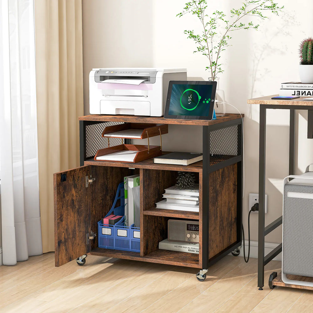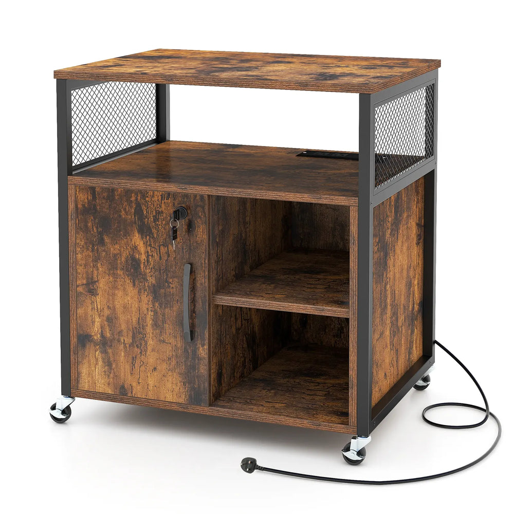 File Cabinet on Wheels with Charging Station and Cable Management Hole-Coffee