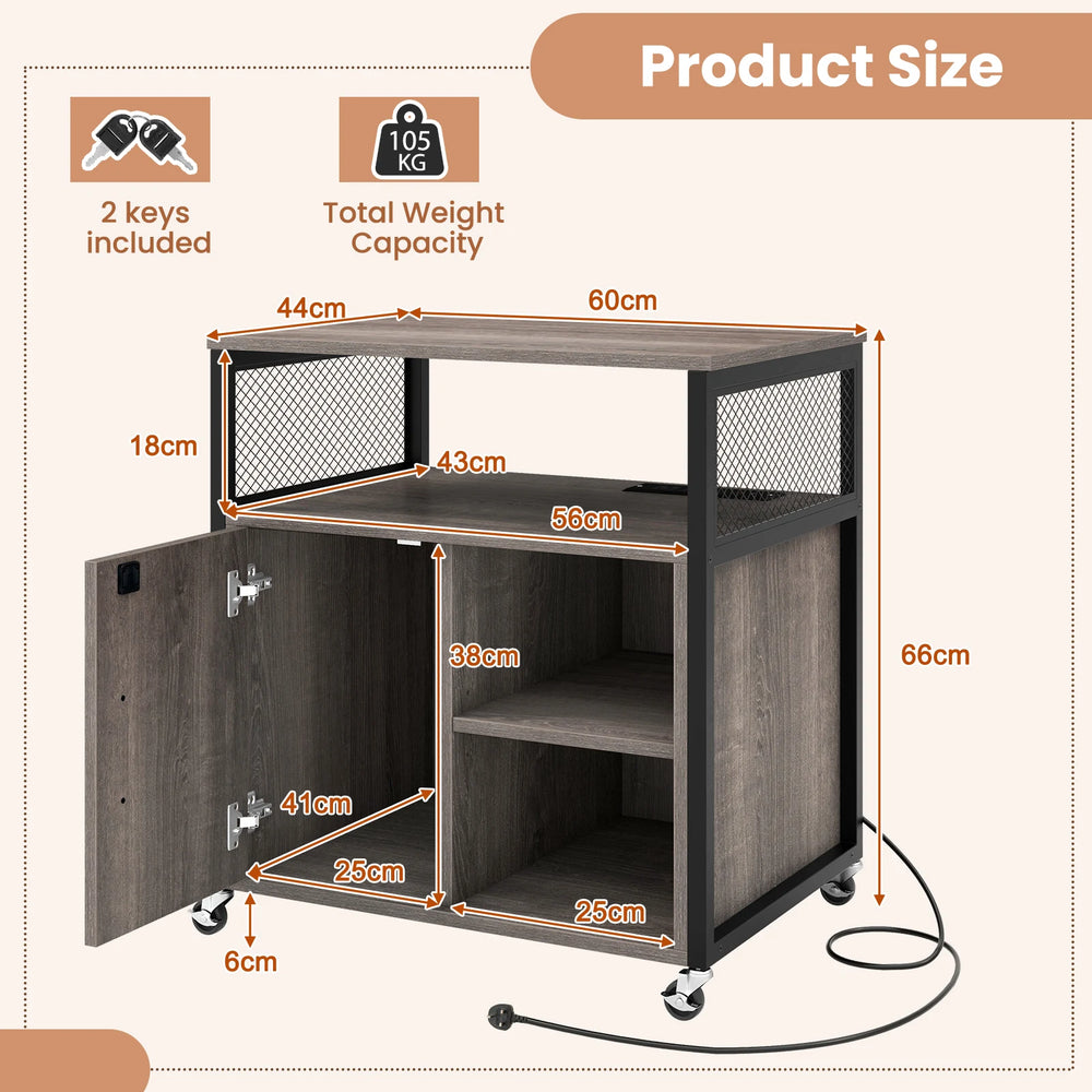File Cabinet on Wheels with Charging Station and Cable Management Hole-Grey