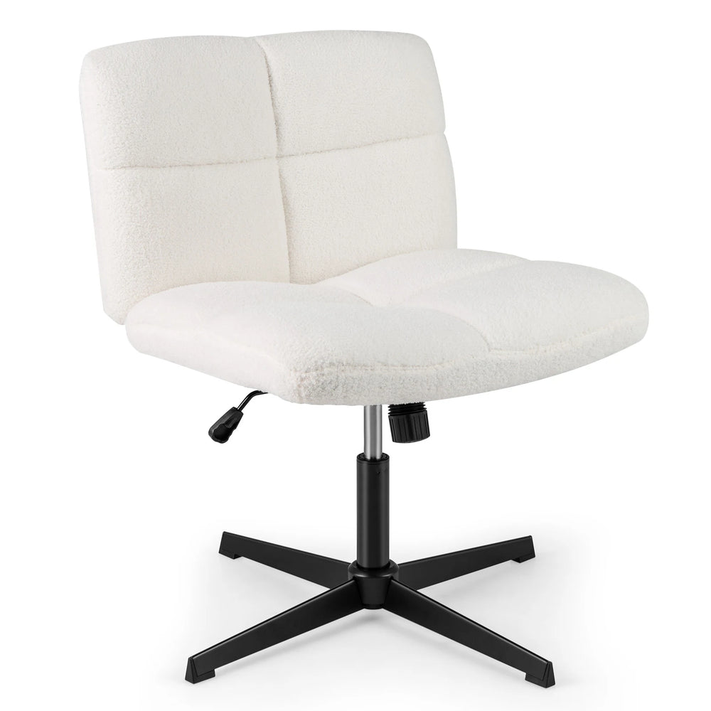 Armless Office Desk Cross Legged Office Chair with Adjustable Height-White