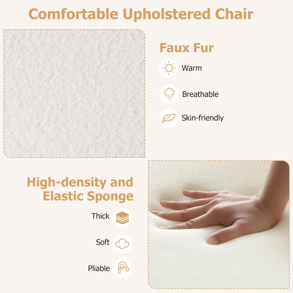 Color Beige Material Faux Fur, Metal, Sponge Product Dimensions 29" x 25" x 30.5"-36" Seat Dimension 25" x 20.5" x 3.5" Seat Height 17"-22.5" Backrest Dimension 25" x 16.5" Base Diameter 29" Net Weight 26.5 Ibs Weight Capacity 350 lbs