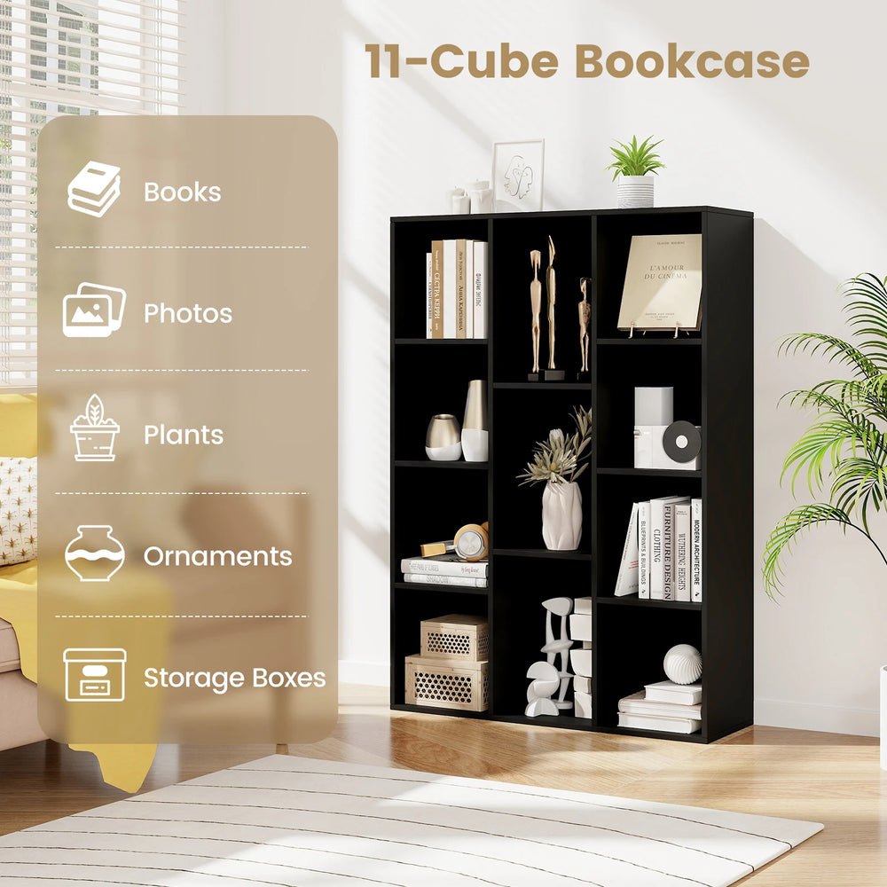 11-Cube Bookcase Modern Geometric Bookshelf with Anti-tipping Kits-Black