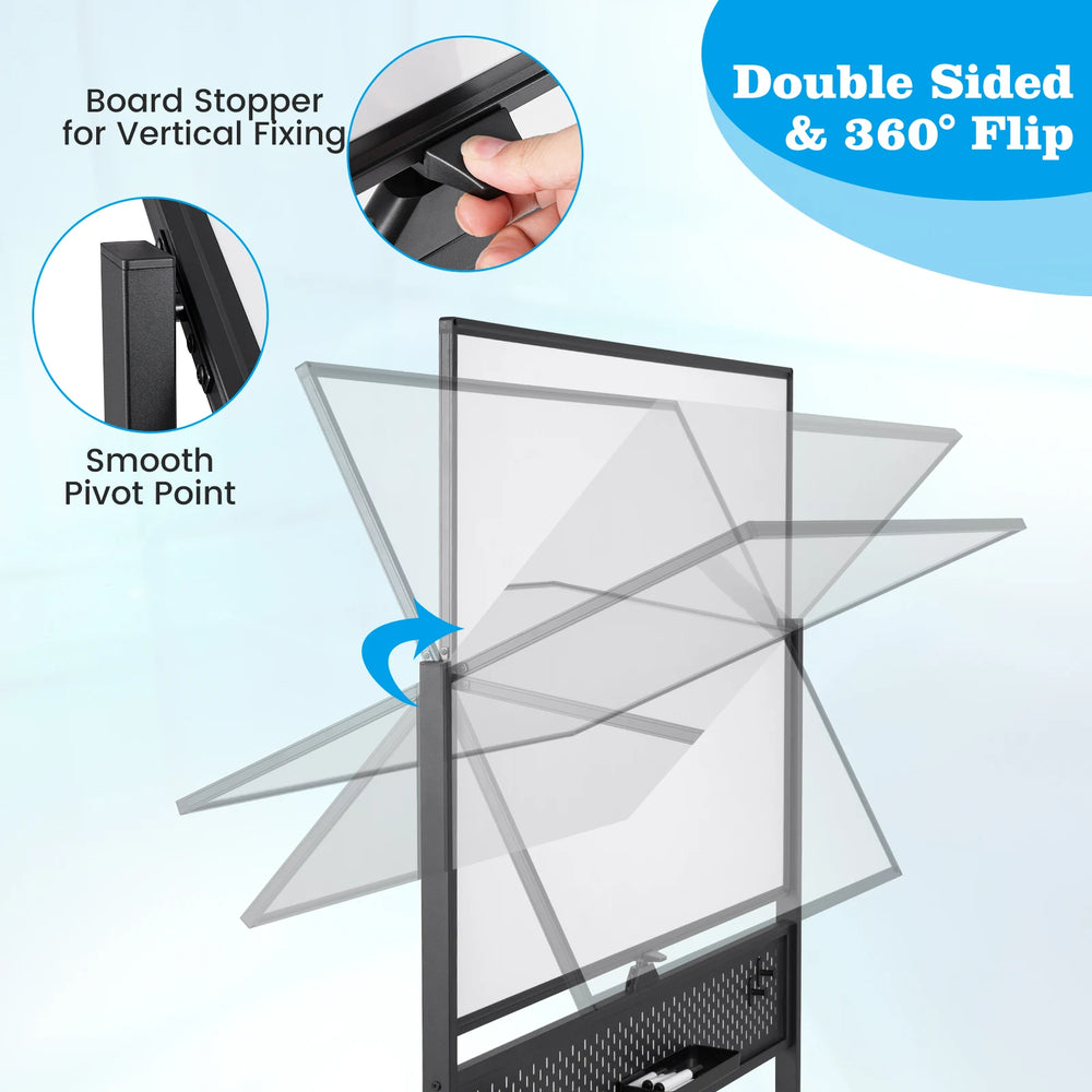 120 x 90 CM Double-Sided Dry Erase Mobile Board with Stand-Black