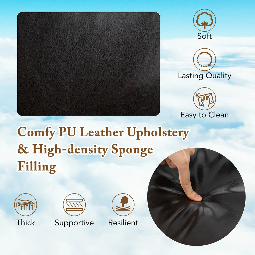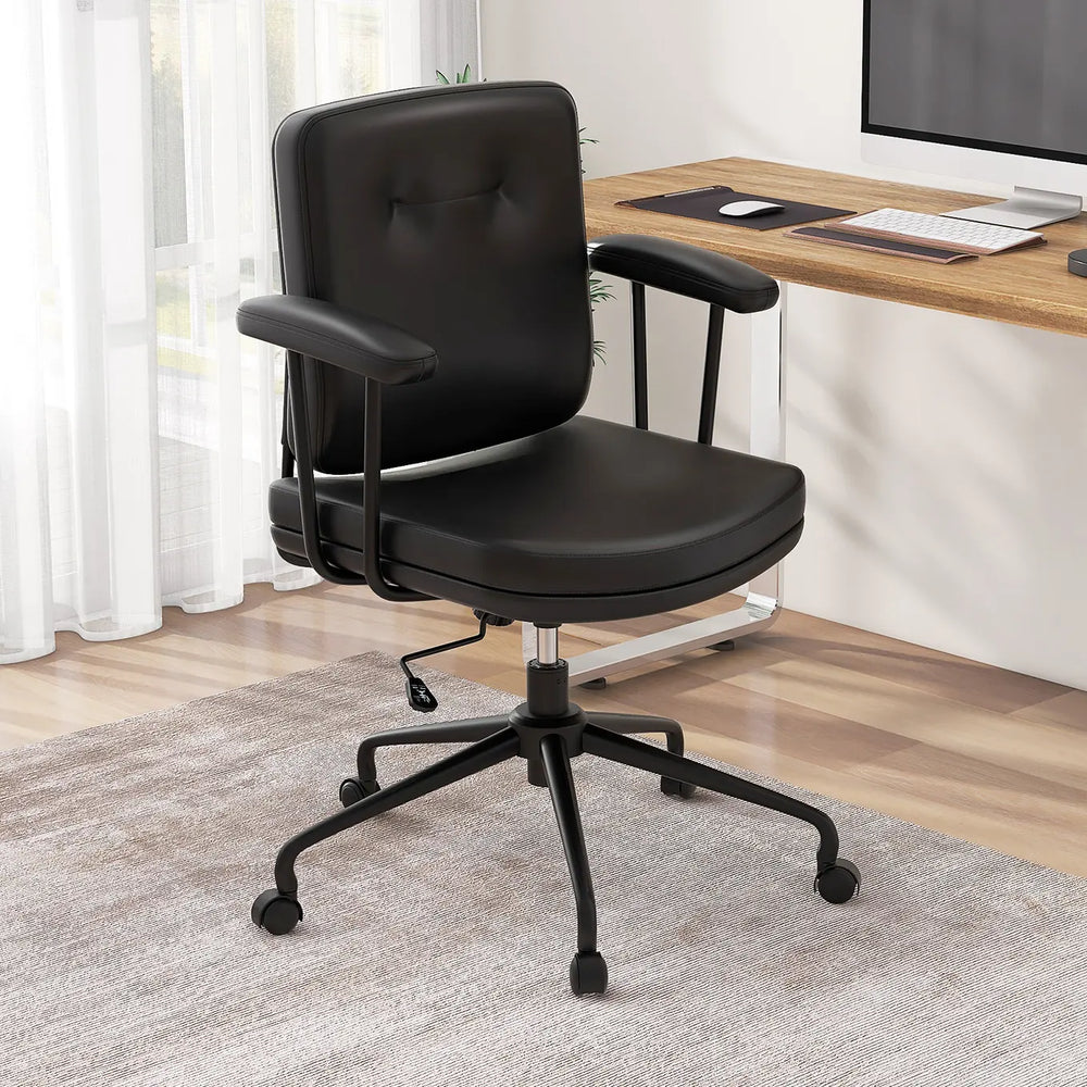 Colour: Dark Brown Material: PU Leather, Sponge, Metal Product Dimensions: 64 x 64 x 88-96 cm (L x W x H) Back Cushion Size: 42 x 40 cm (L x W) Seat Cushion Size: 48 x 38 x 8 cm (W x D x H) Adjustable Height: 8 cm Seat Height: 47-55 cm Distance Between Armrests: 60 cm Armrest Height: 64-72 cm Weight Capacity: 110 kg Net Weight: 10 kg Package Includes: 1 x Home Office Chair 1 x Instruction Manual