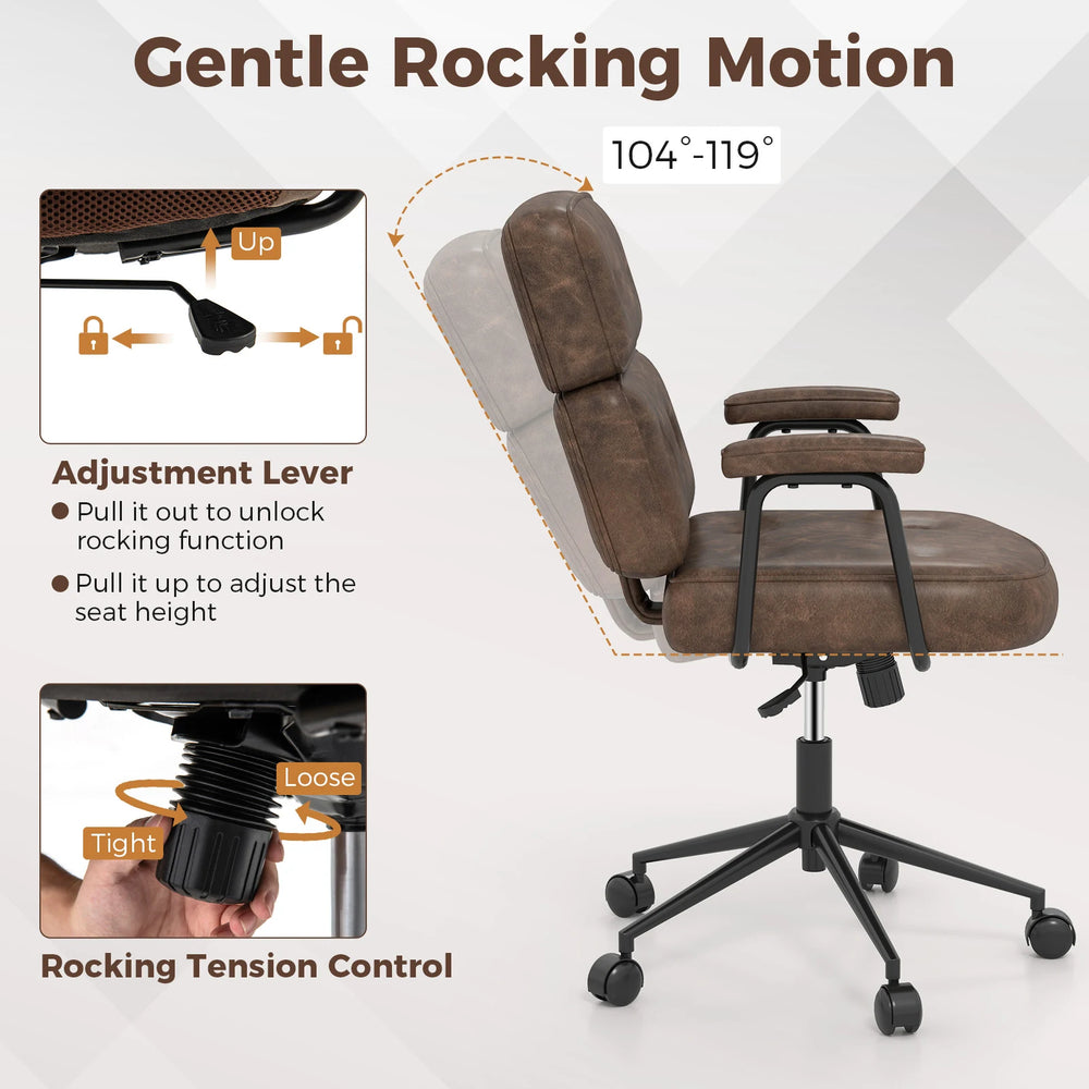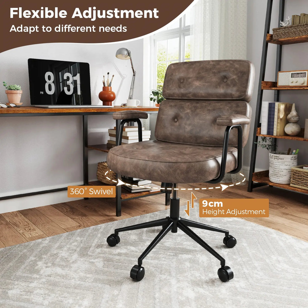 PU Leather Upholstered Desk Office Chair with Button Tufted Back-Brown