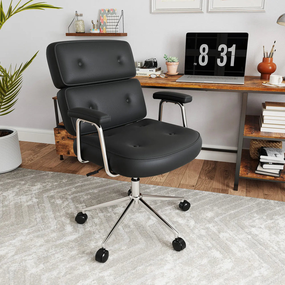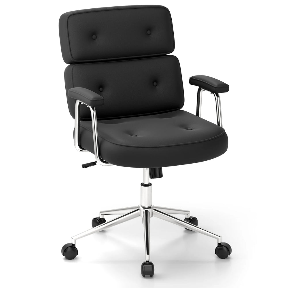 PU Leather Upholstered Desk Office Chair with Button Tufted Back-Black
