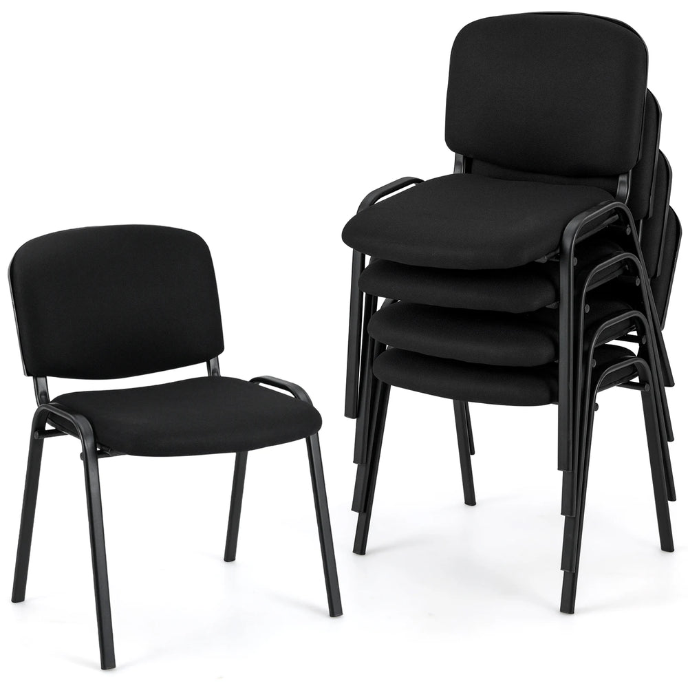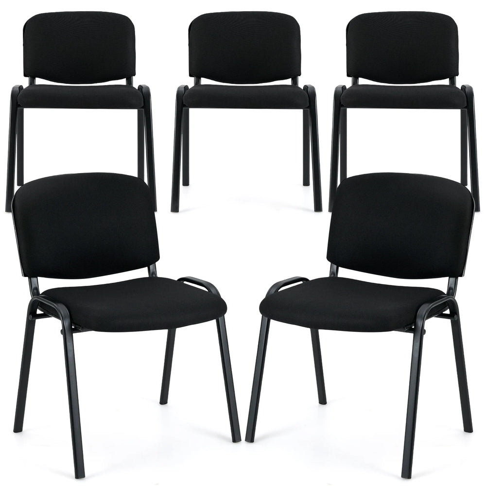 Set of 5 Stackable Reception Guest Chairs with Waterfall Seat and Metal Frame-Black