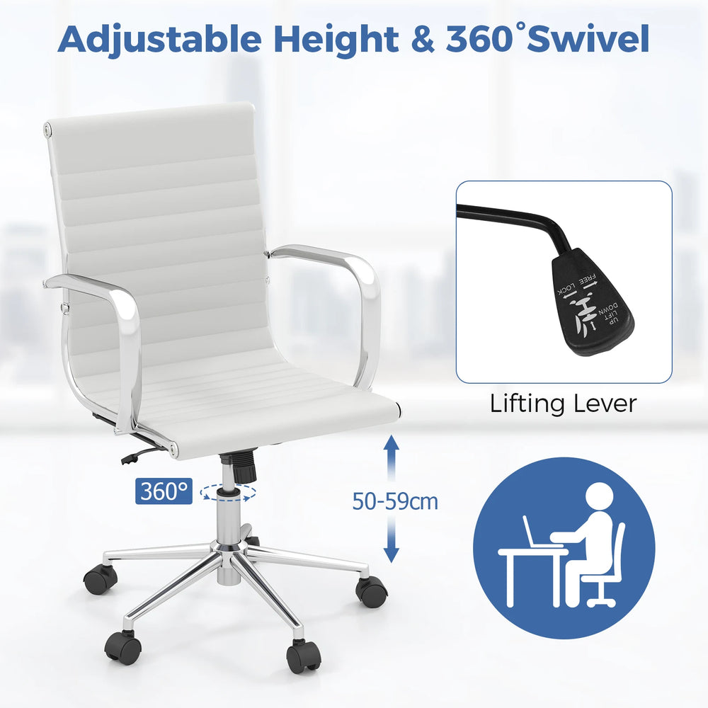 Ribbed Executive Office Chair Adjustable Swivel PU Leather Conference Chair-White