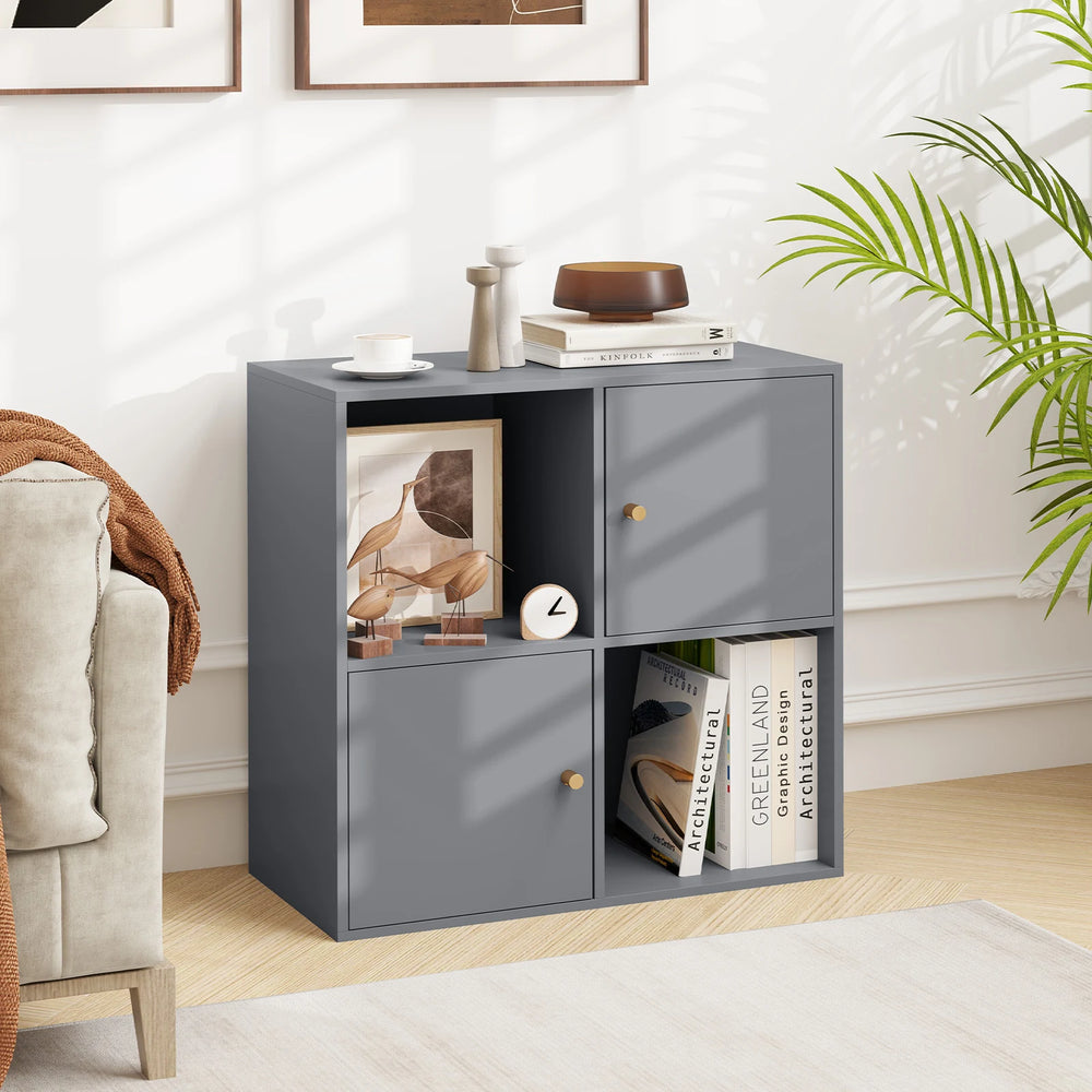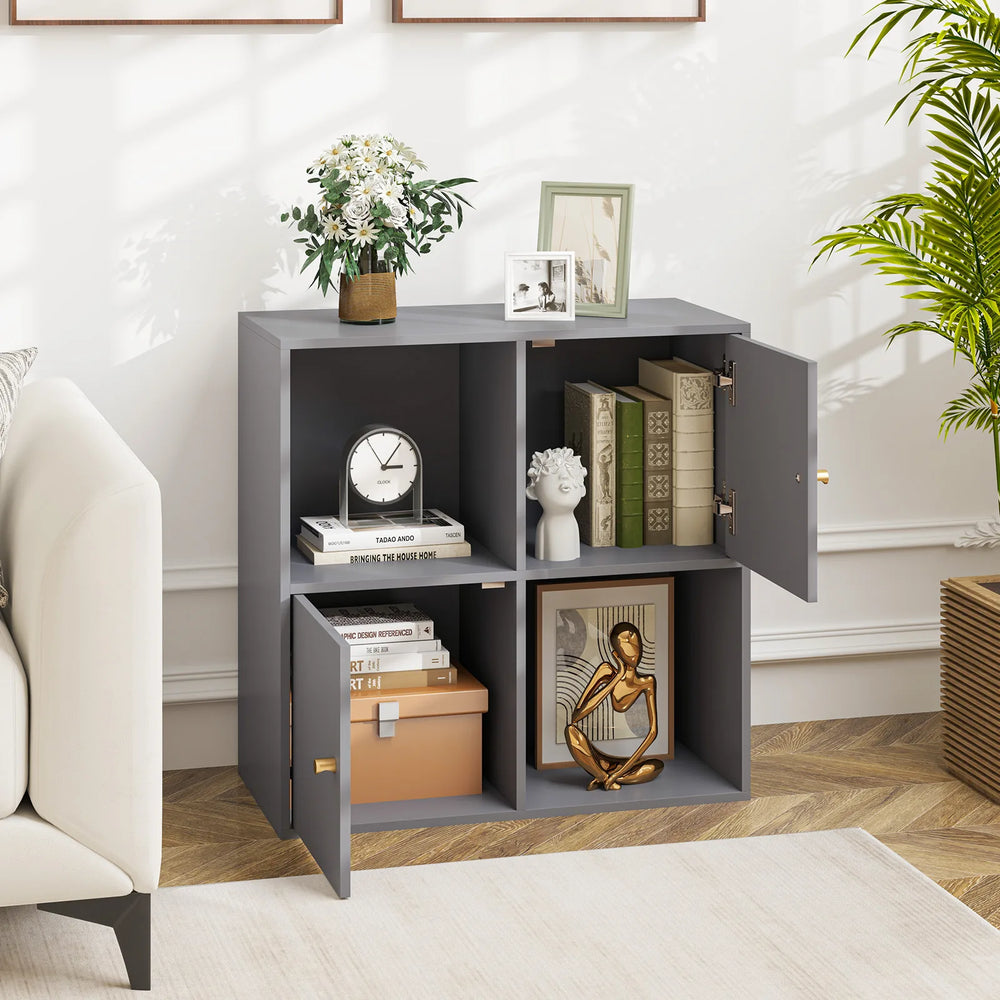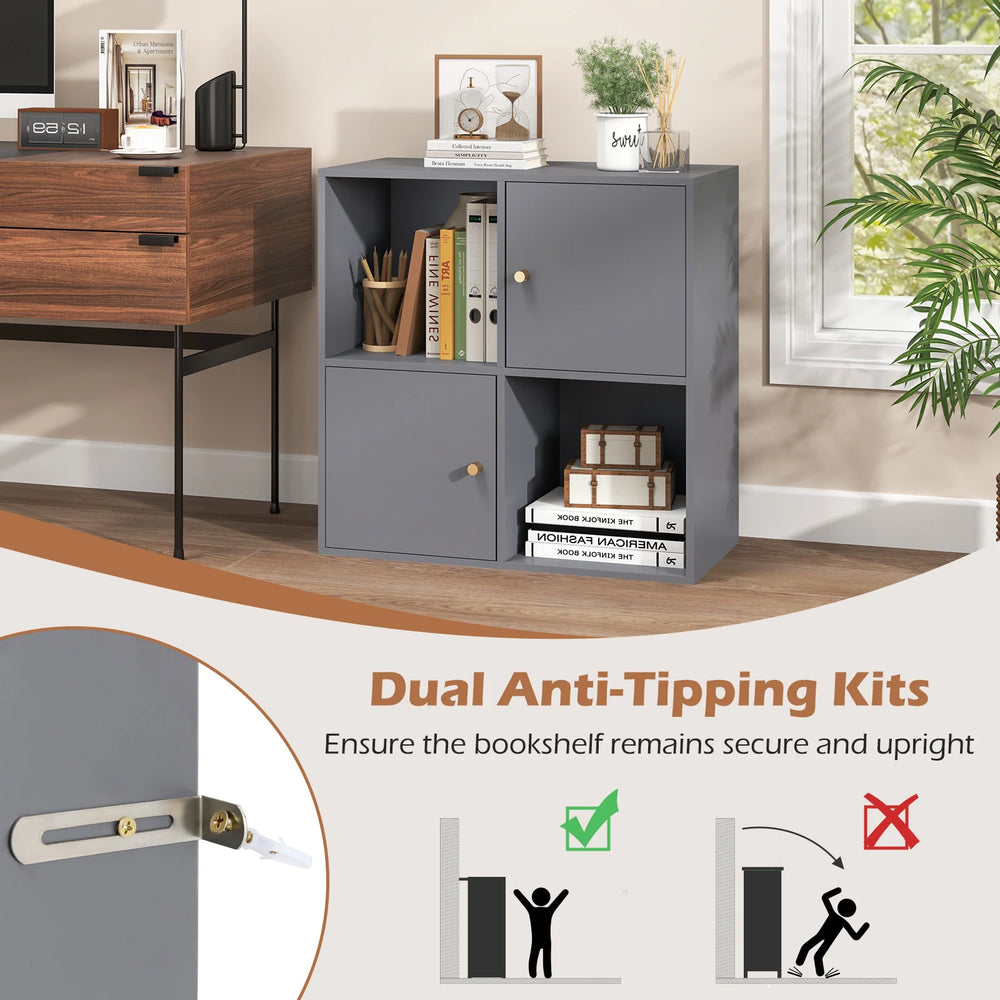 3-Tier Bookshelf with Dual Anti-Tipping Kits and 2 Cabinets-Grey