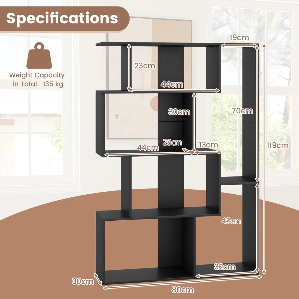 Colour: Natural/White/Coffee/Black Material: Engineered Wood Product Dimension: 80 x 30 x 119cm cm (L x W x H) Weight Capacity in Total: 135 kg Net Weight: 29 kg Box Qty: 1 Package Includes: 1 x Bookshelf 1 x Instruction Manual