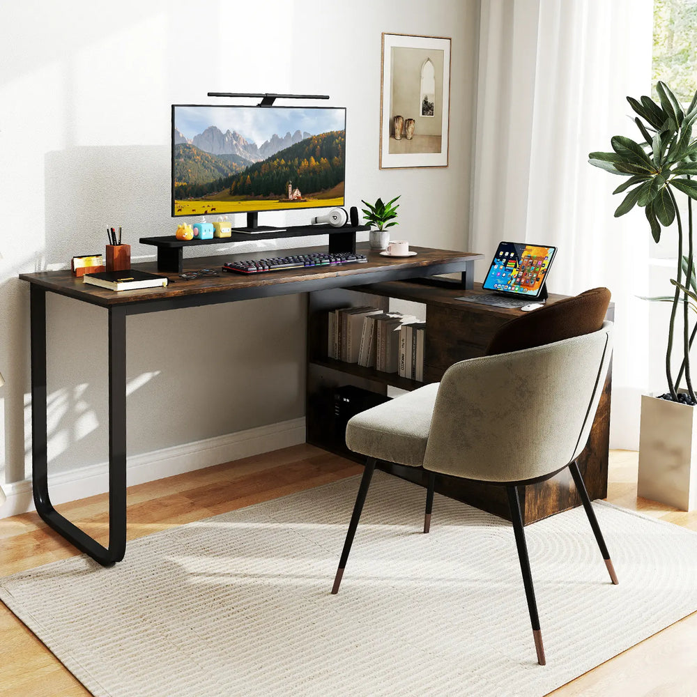 Heavy-duty L Shaped Computer Desk Corner Executive Desk with 3 Drawers-Coffee