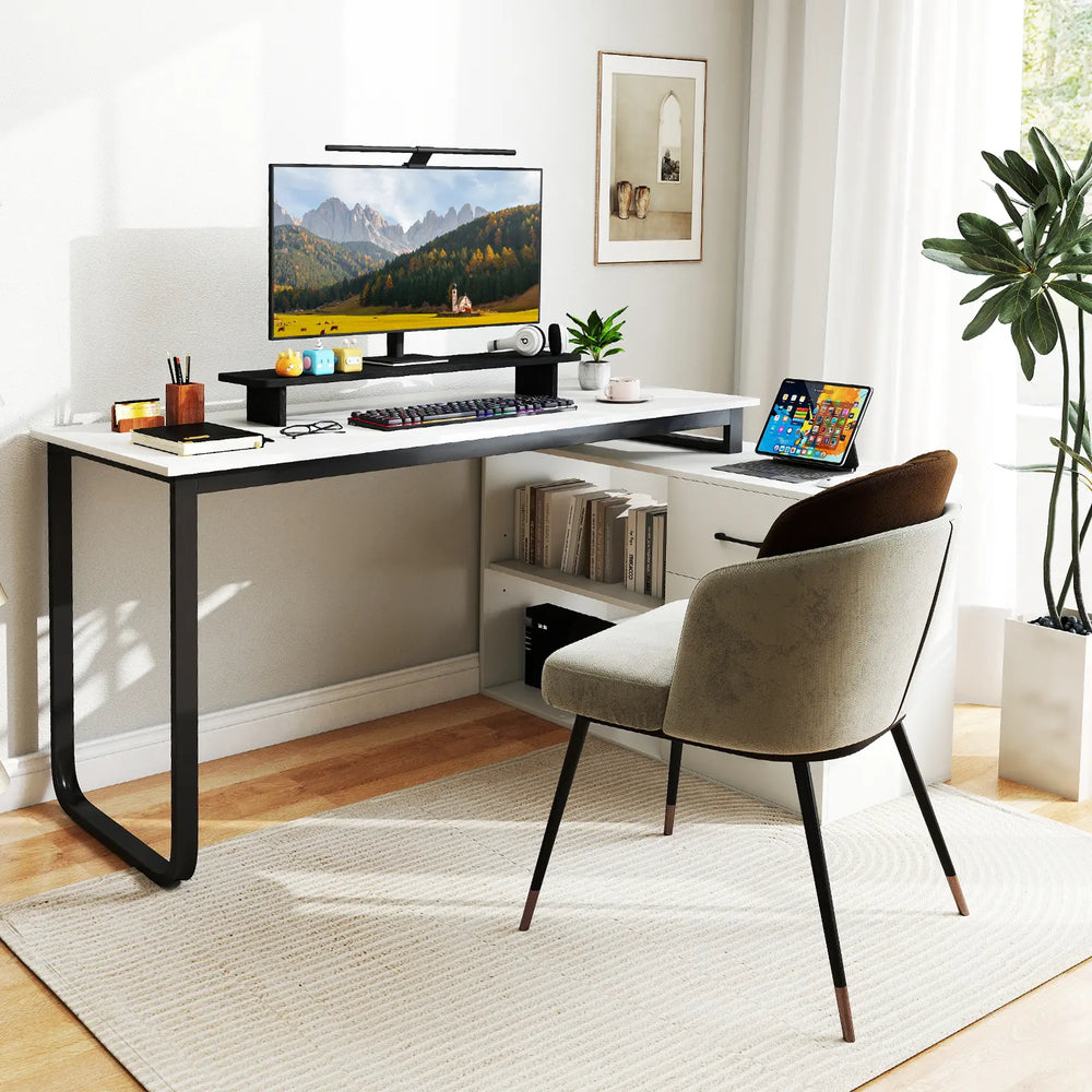 L Shaped Computer Desk Corner Executive Desk with 3 Drawers