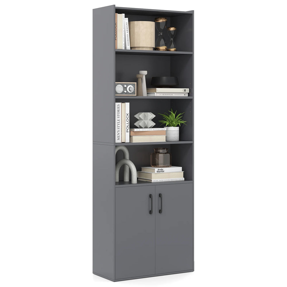 6-tier Modern Style Bookcase with Adjustable Shelves-Grey