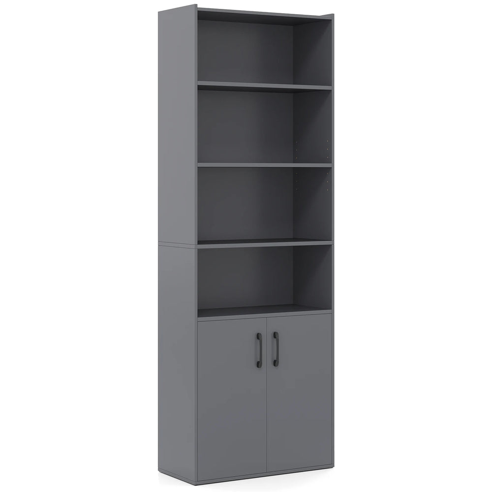 Colour: Grey Material: Engineered Wood, MDF Overall Dimensions: 62 x 30 x 178 cm (L x W x H) Open Shelf Dimensions: 60 x 28 x 26 cm (L x W x H) Adjustable Shelf Height: 59 cm Cabinet Interior Dimensions: 60 x 28 x 59 cm Weight Capacity in Total: 70 kg Net Weight: 26 kg Box QTY: 2(May vary by batch) Package Includes: 1 x Bookcase with Cabinet 1 x Instruction Manual