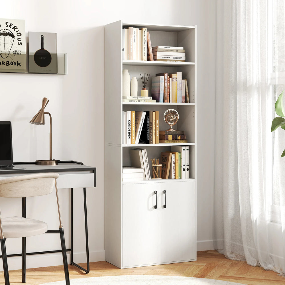 6-tier Modern Style Bookcase with Adjustable Shelves-White