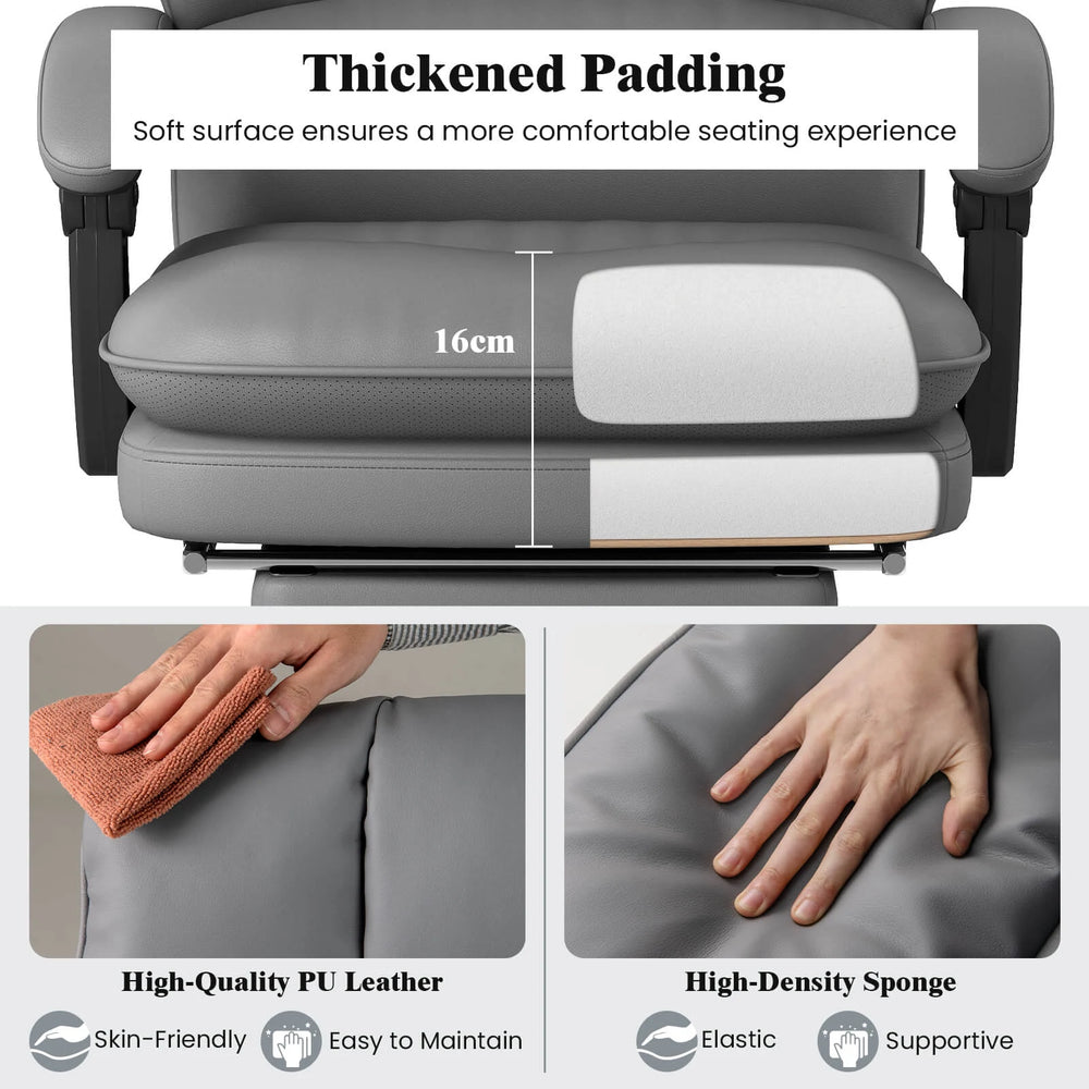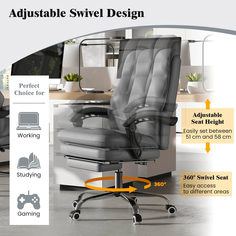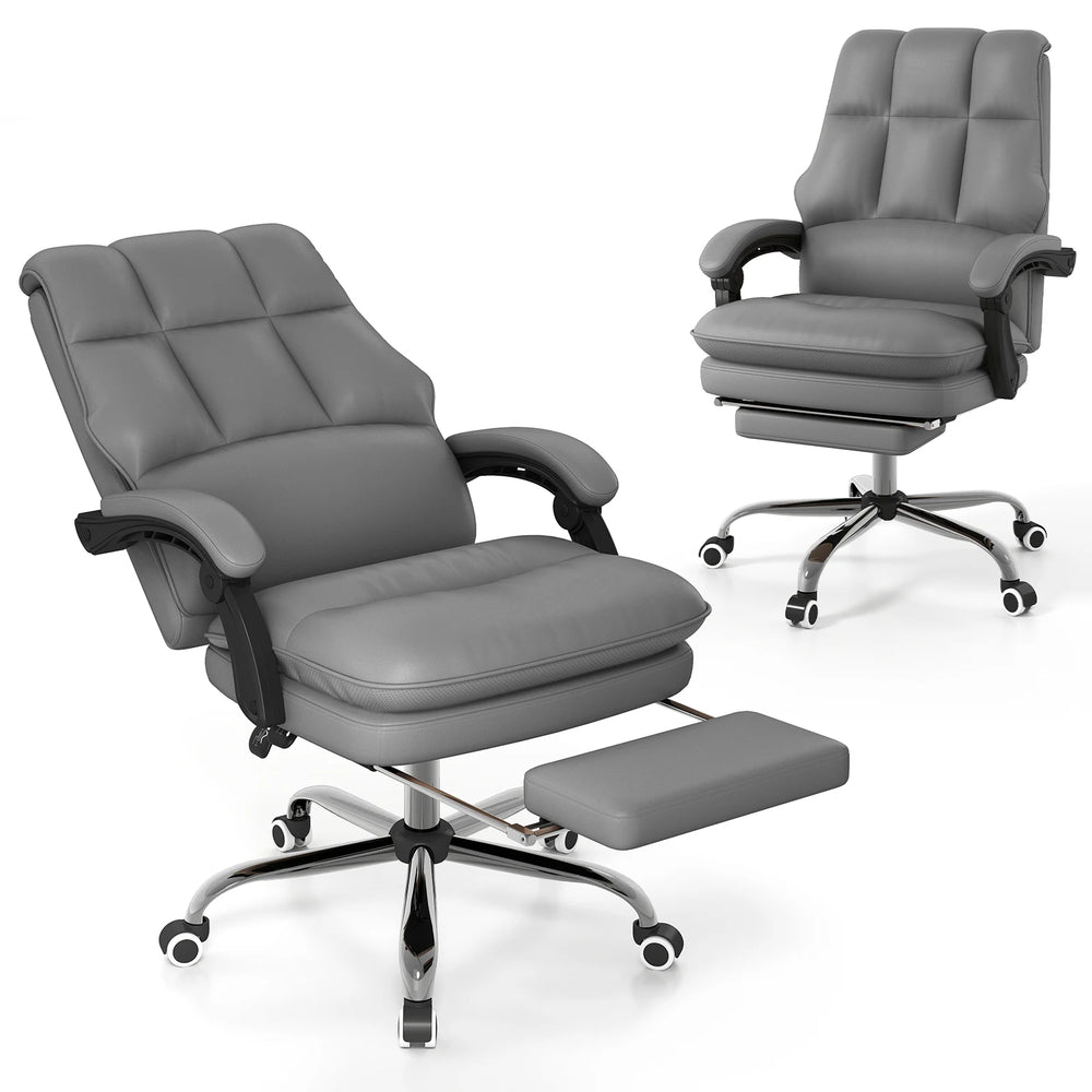 Ergonomic Office Chair PU Leather Adjustable Swivel with Reclining Backrest-Grey